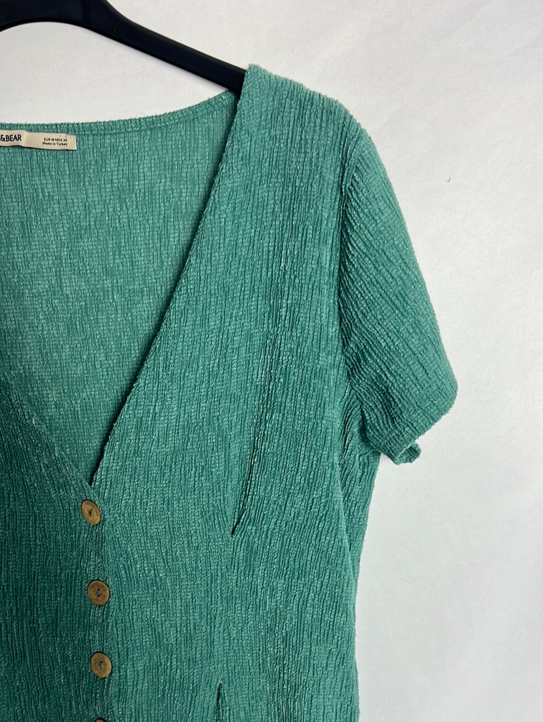 PULL&BEAR. Vestido corto textura verde agua. TM