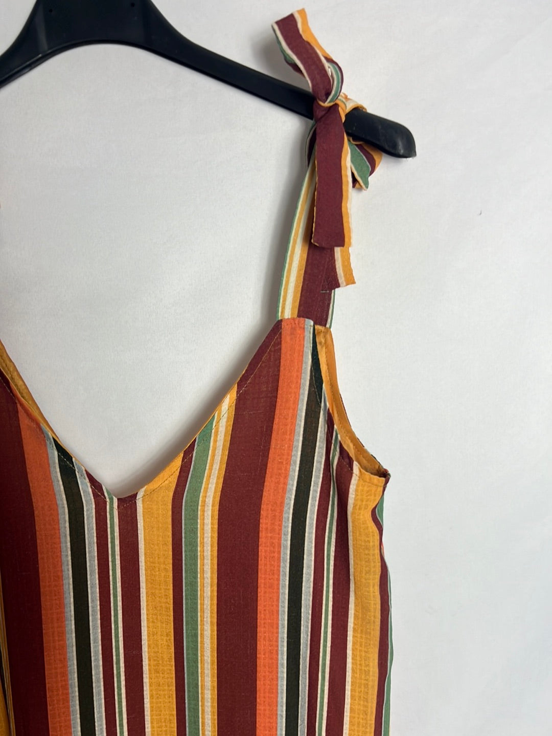 vestido midi de rayas con lazada en los tirantes. Largo 124cm