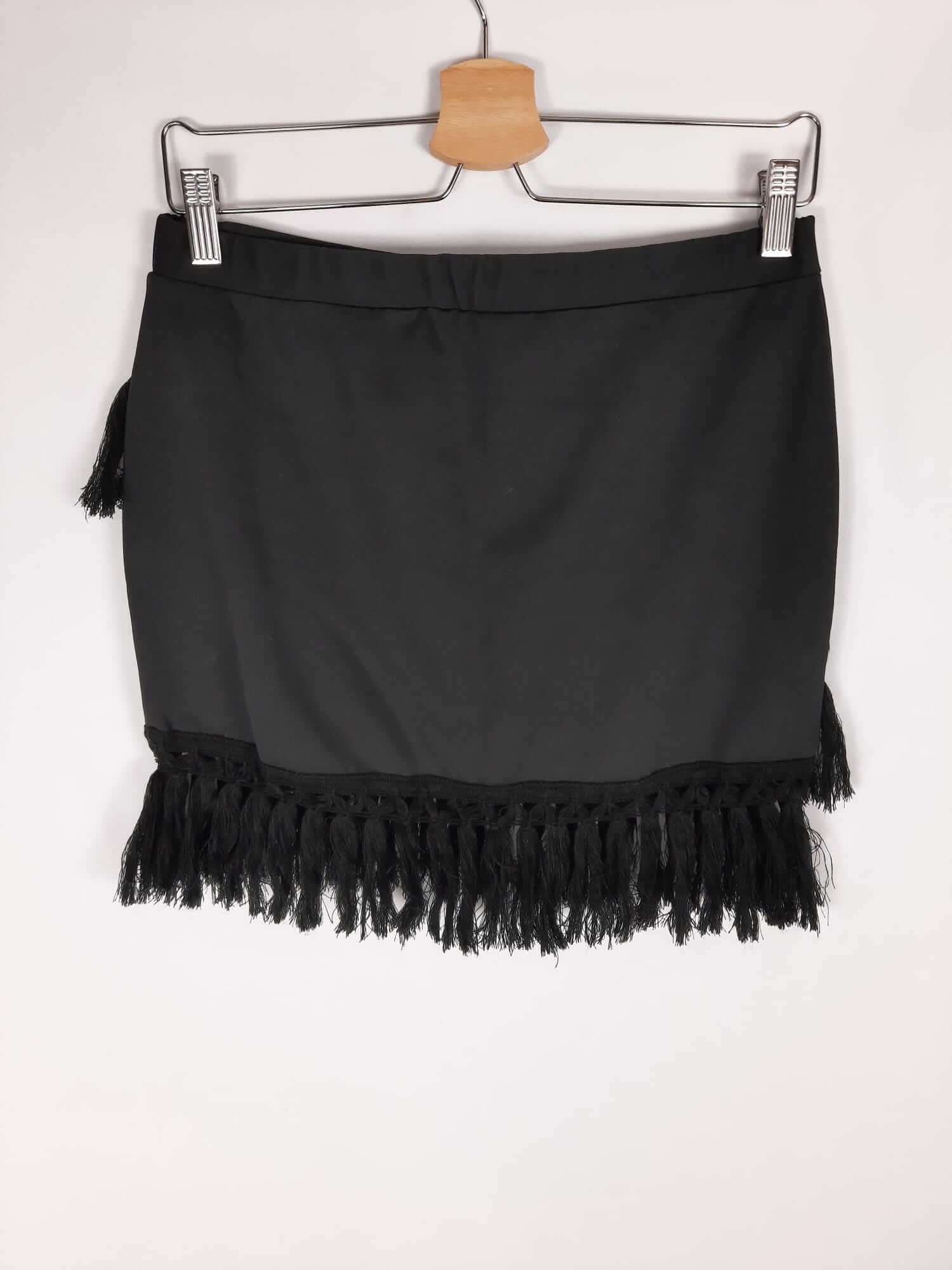 Pull&bear.NUEVO CON ETIQUETA. Falda negra corta elastica con flecos. Largo 43 cm
