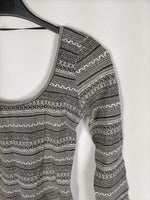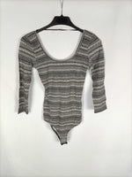 Pull&bear. Body elástico con estampado étnico negro y blanco. Largo 64 cm