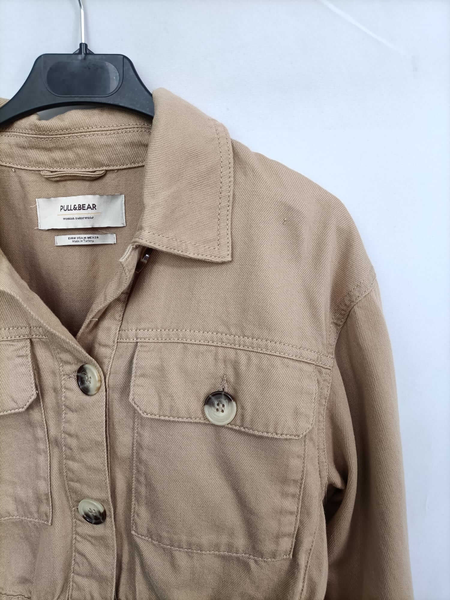 Pull&bear. M. Cazadora beige cortita Abotonado y ajustable en la cintura. Finita. No elástica. De sisa a sisa 53 cm largo 46 cm