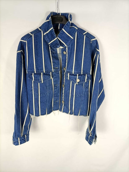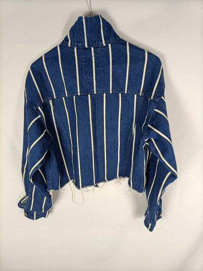 Pull&bear. cazadora denim de rayas. Cortita y con los bajos deshilachados. No elastica. De sisa a sisa 51 cm largo 55 cm