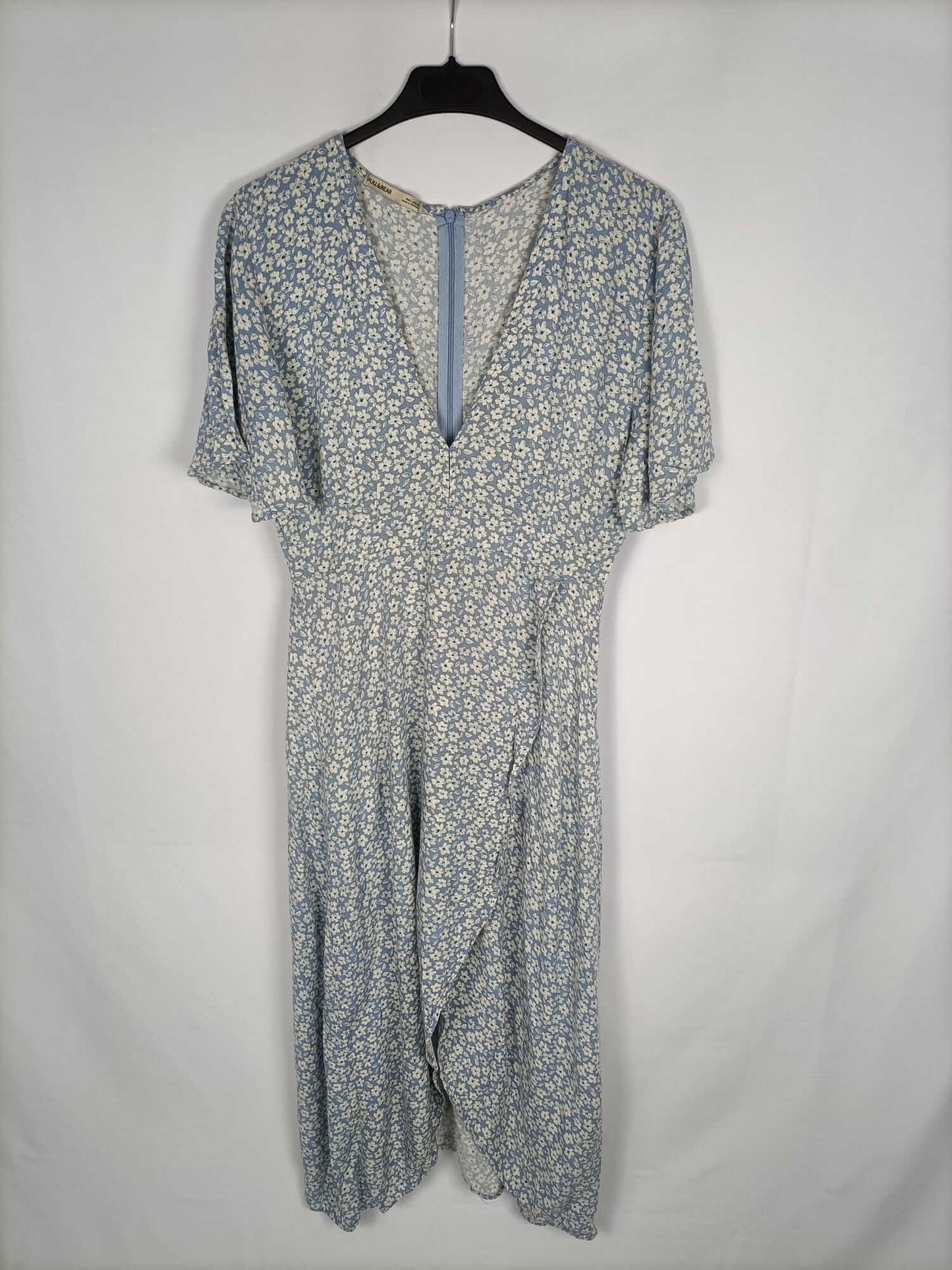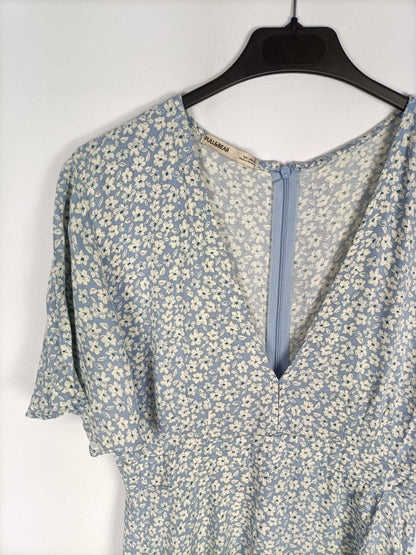PULL&BEAR. Vestido midi azul estampado flores T.l