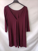 Vestido burdeos de tejido elástico y fluido con la espalda de pico.