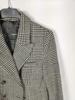 Pull&bear. Xs. Abrido estilo blazer de pata de gallo negro y beige. Se abrocha de forma cruzada. No elástico. De sisa a sisa 40 cm largo 72 cm