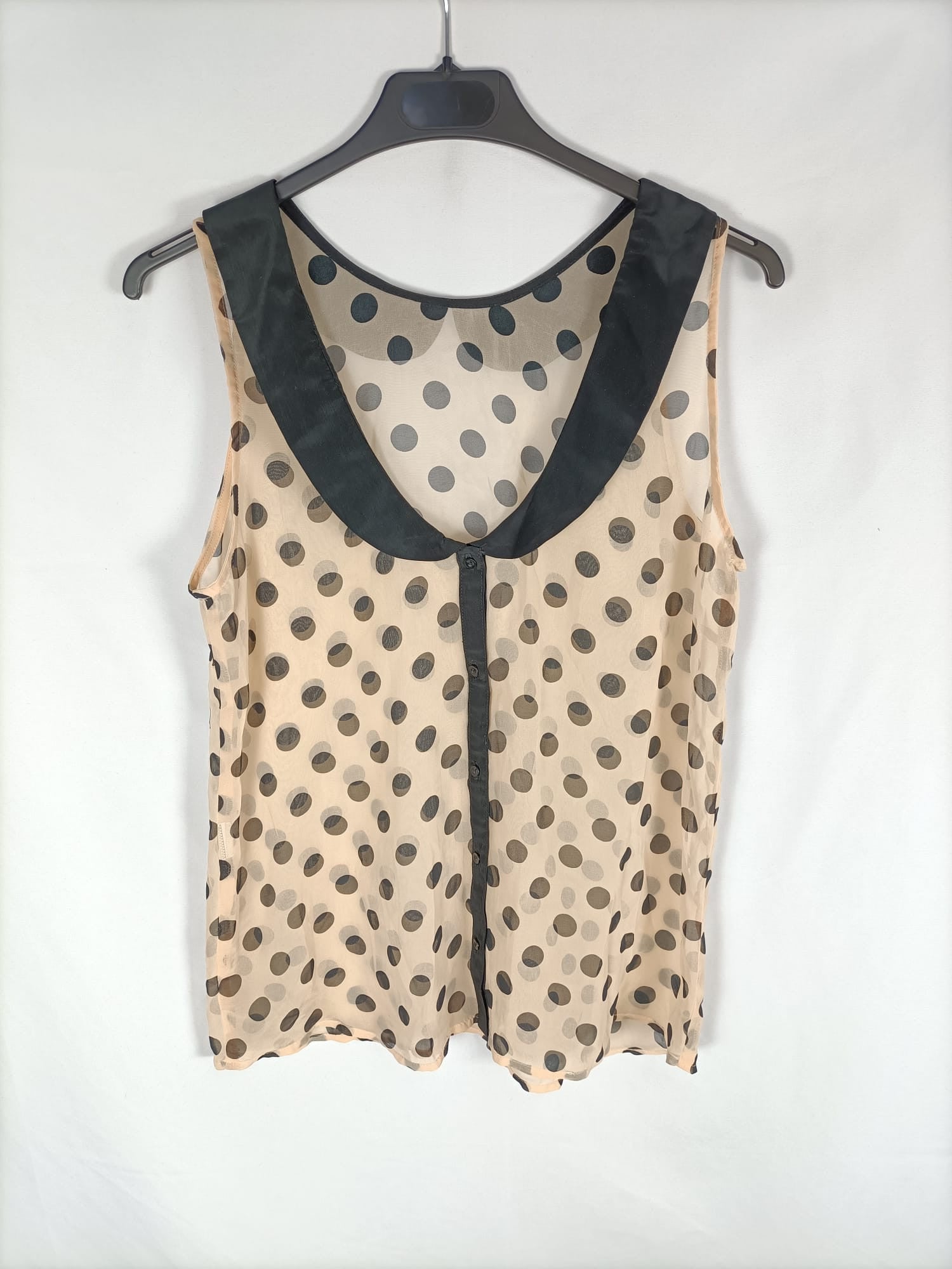 Pull&bear. m. Blusa color maquillaje con lunares negro. Fluida y semitransparente. No elástica. De sisa a sisa 49 cm largo 66 cm