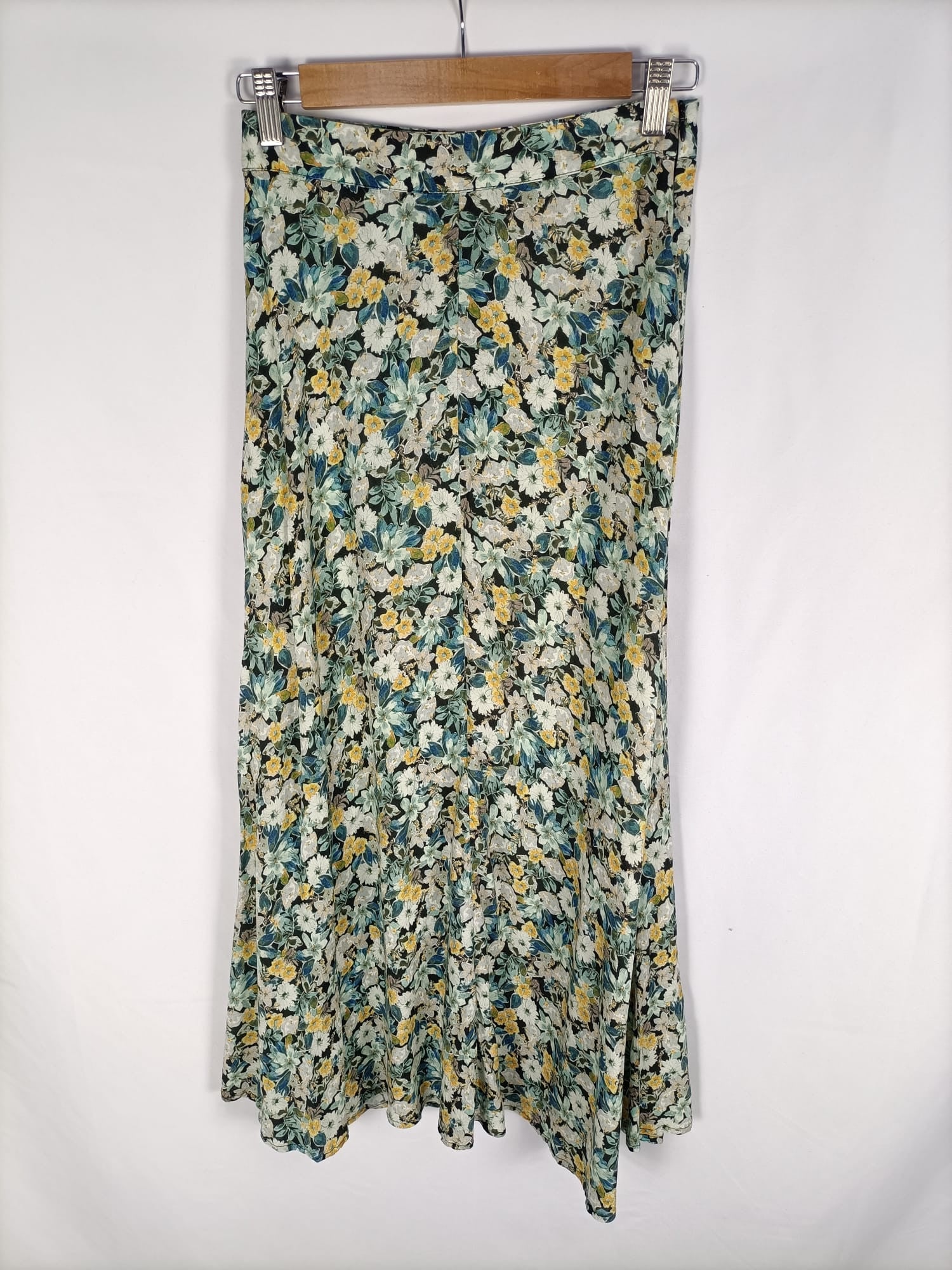 Pull&bear. S. Falda midi de flores. Fluida y fina. Cintura 34 cm largo 90 cm