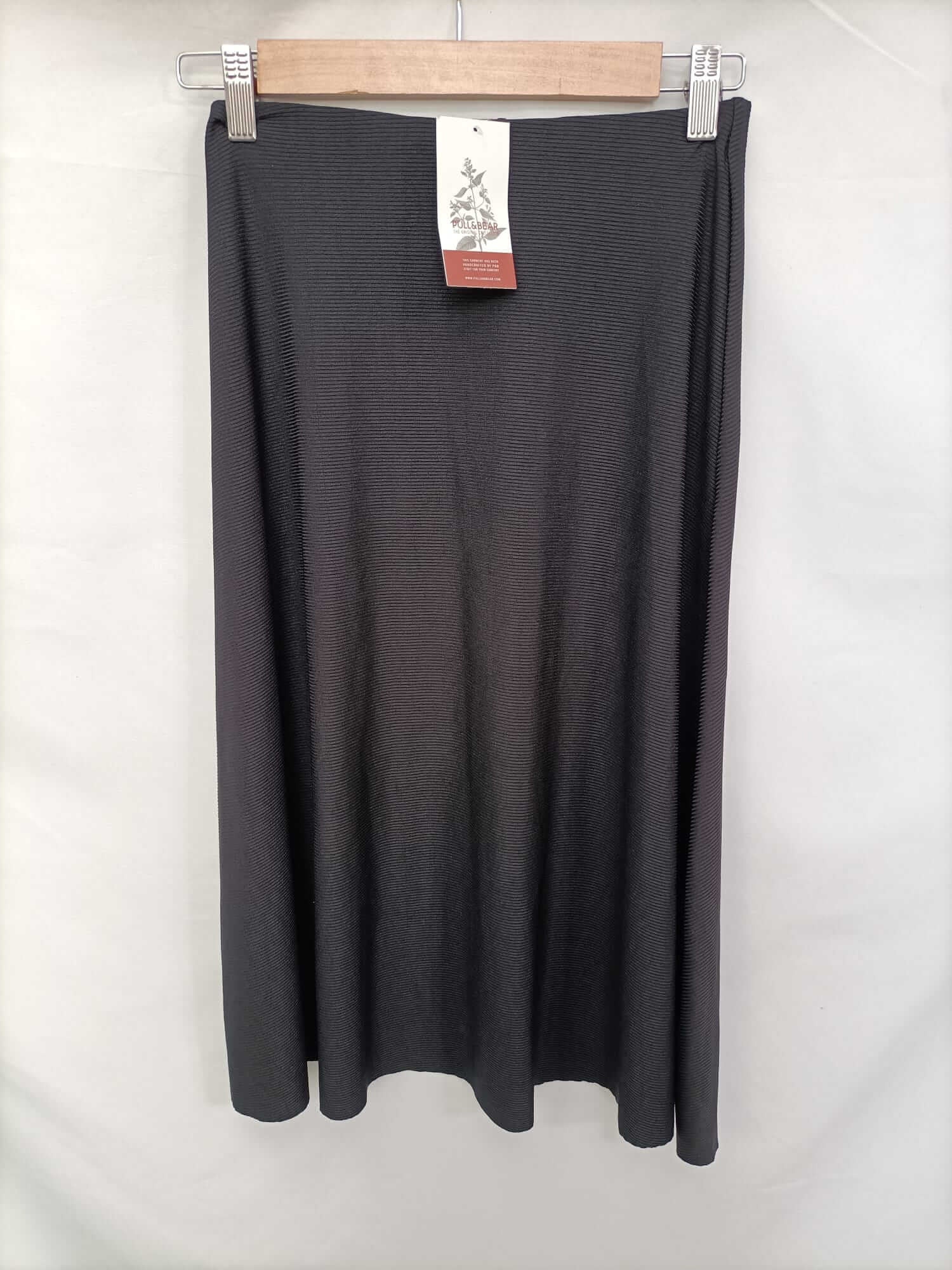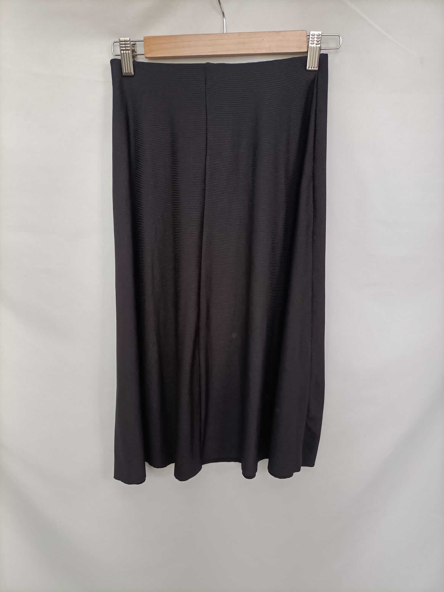 Pull&bear. S. NUEVO CON ETIQUETA. Falda midi negra fluida de tejido de canalé elástica. Largo 71 cm