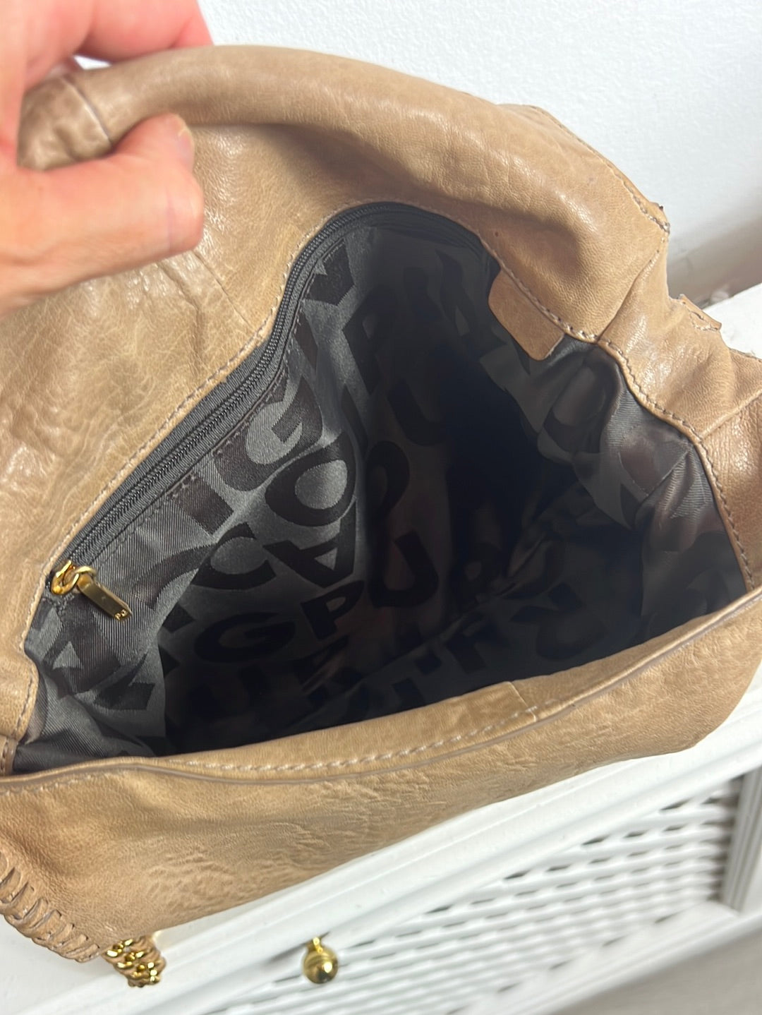 Bolso marrón piel piel textura Tara: tiene 2 marcas pequeñas