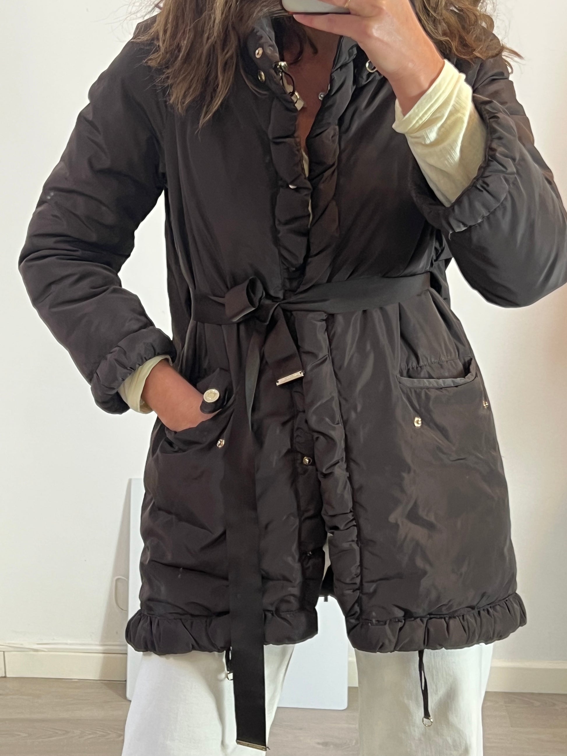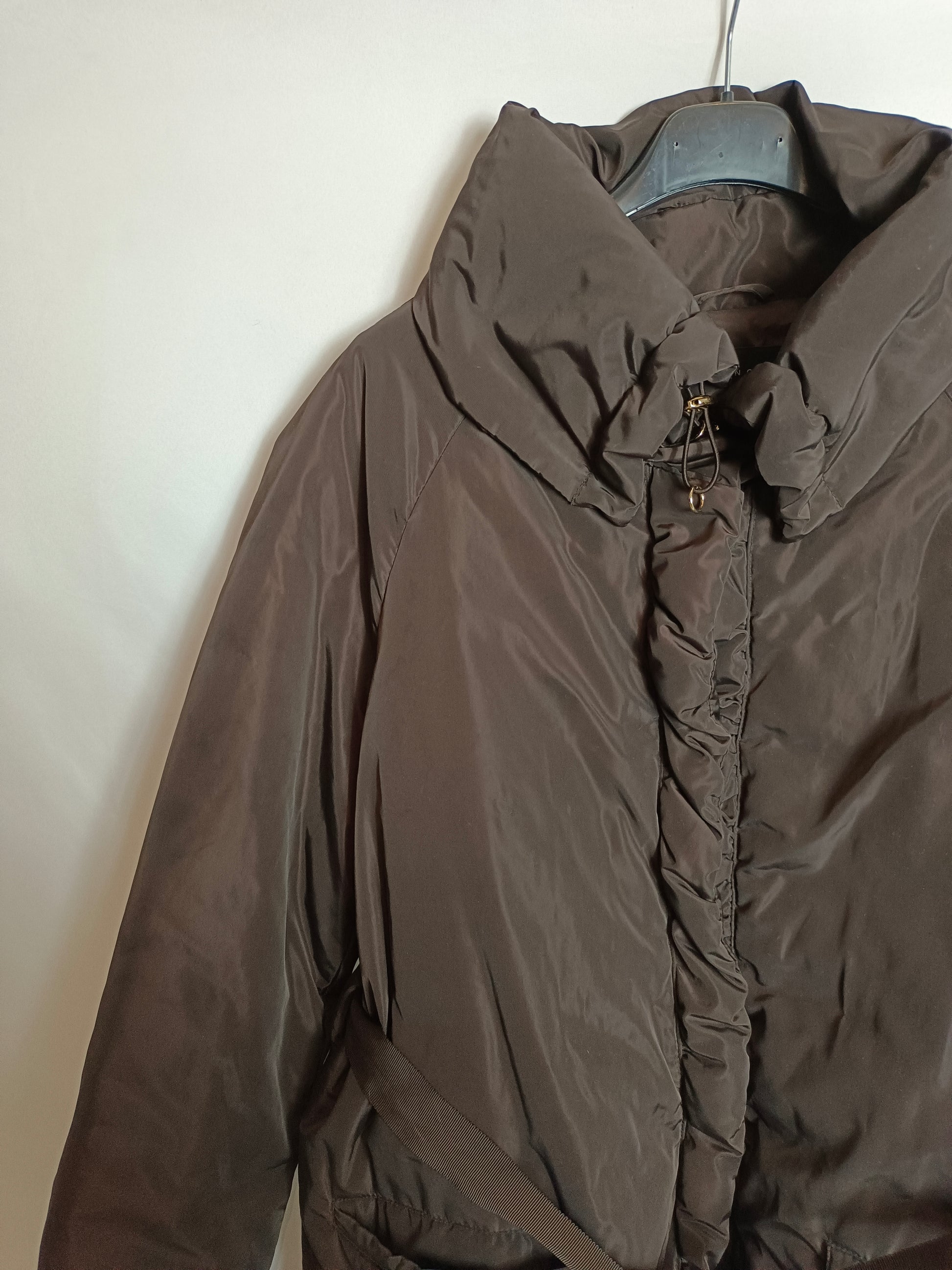 plumas marrón con cinturón.