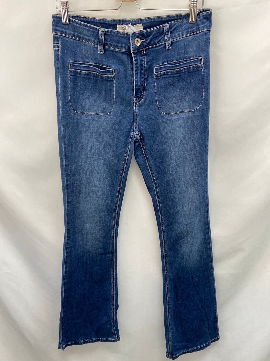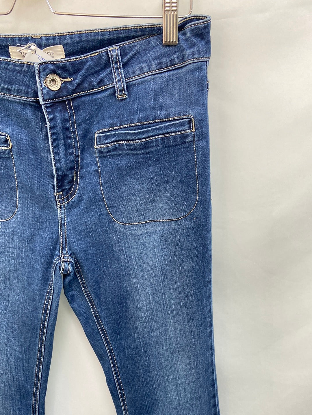 Pantalón de campana vaquero, con dos bolsillos pequeños en la parte delantera y son semielásticos