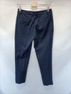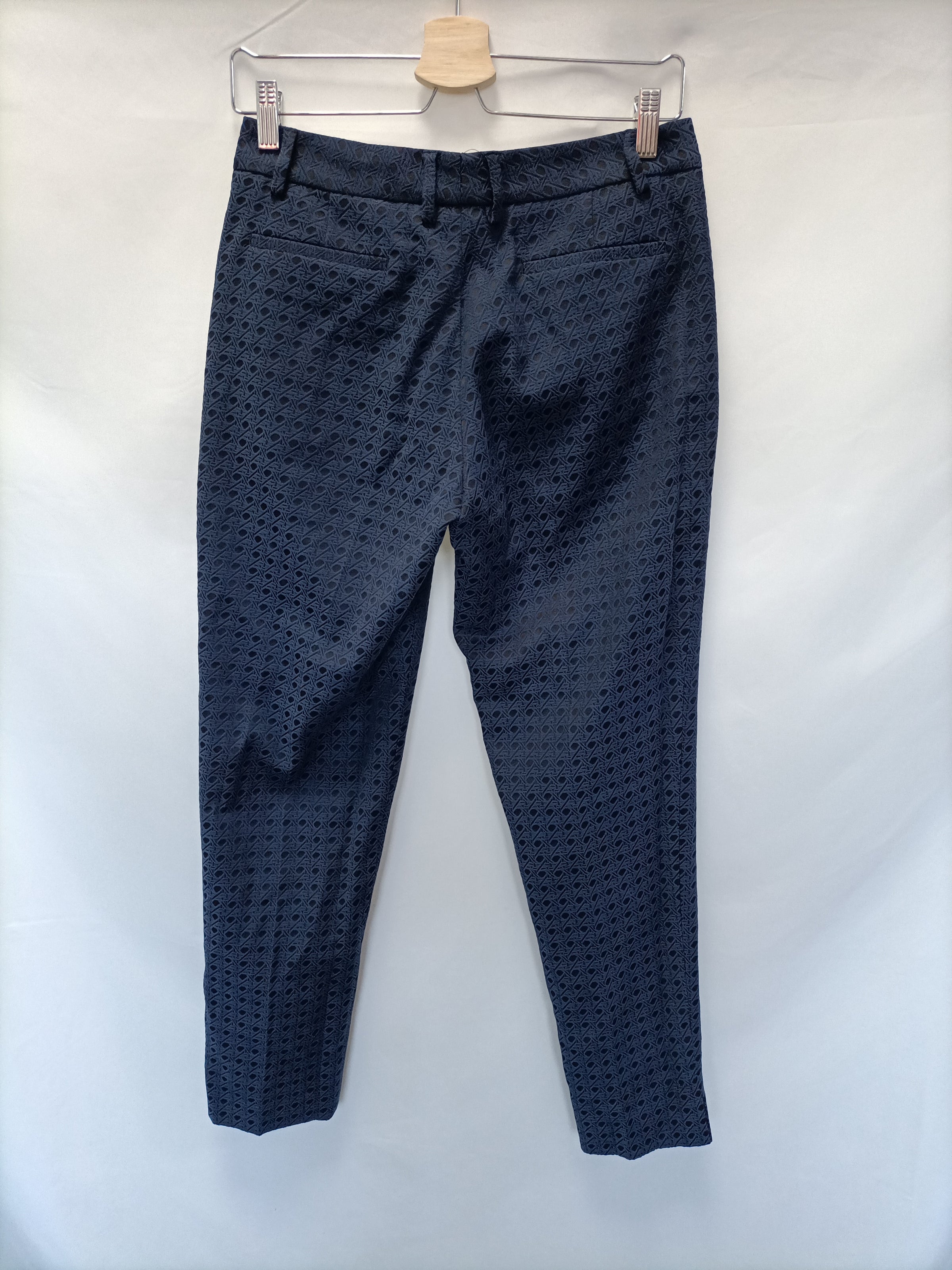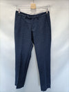 Pantalones azules estampados con detalles negros, arreglados de pinza. Cintura 38 cm largo 94 cm