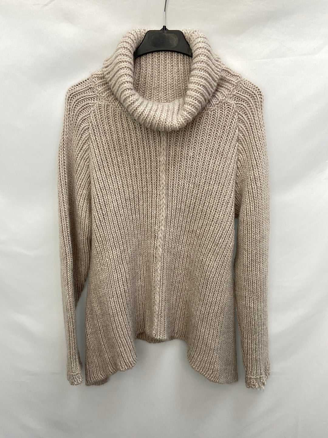 Jersey gris gordito de cuello alto. oversized y elástico.