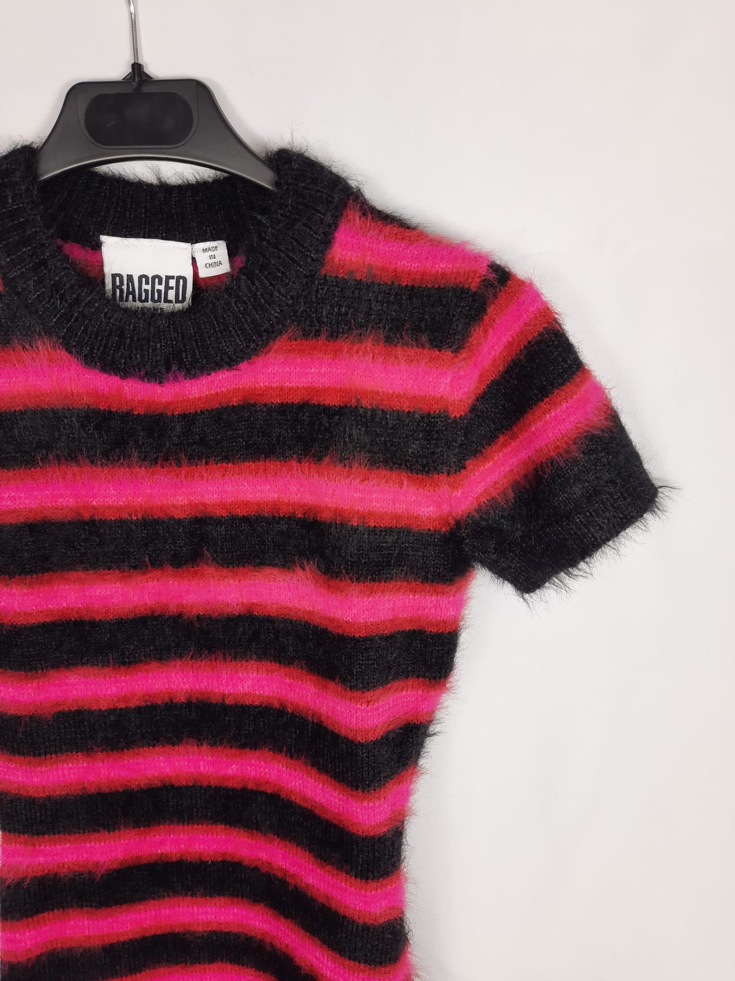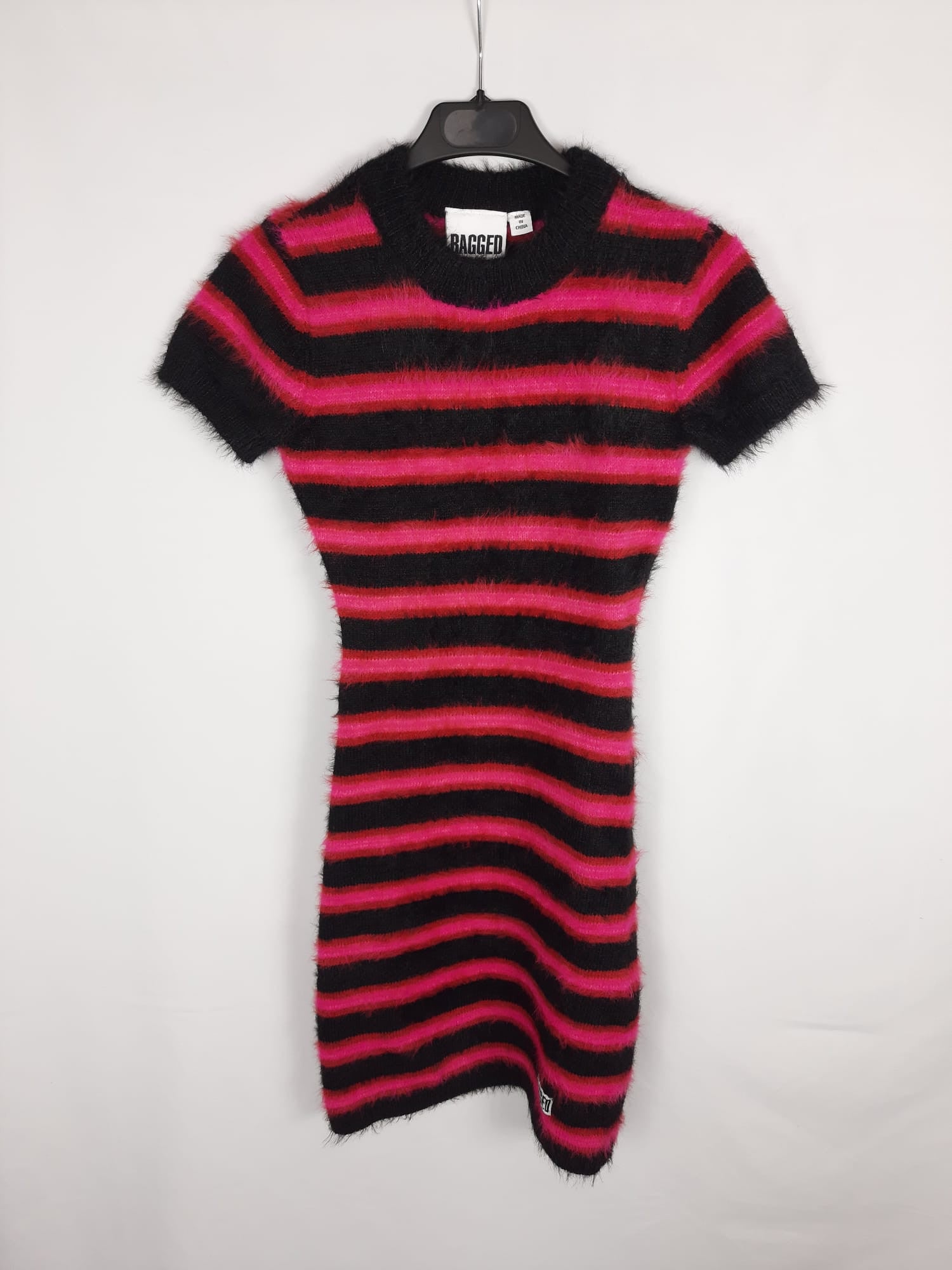 Ragged. Vestido corto de punto con pelito. Elástico y ajustado. Largo 89 cm