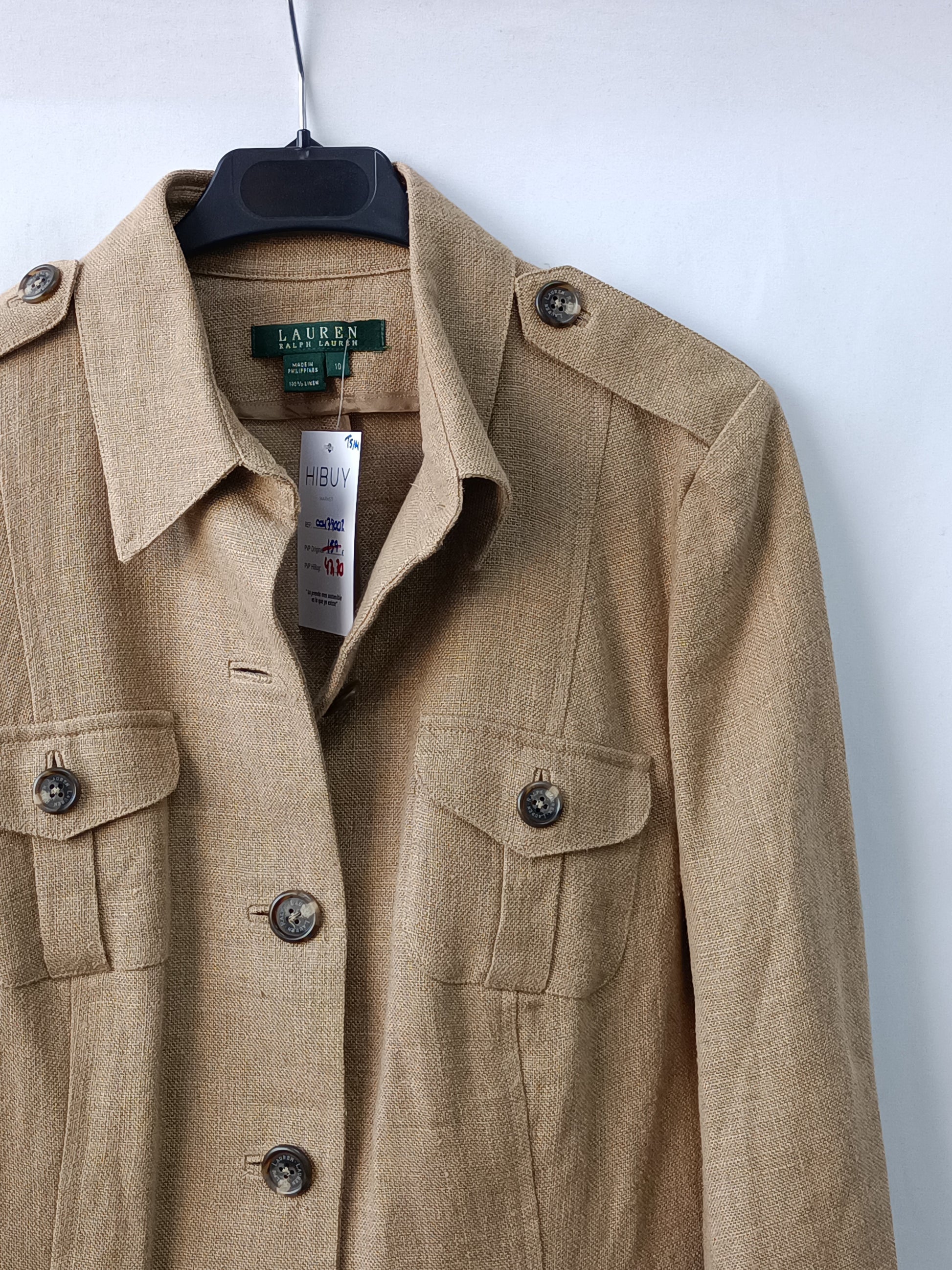 RALPH LAUREN.Sobrecamisa lino beige T.10 (38)
