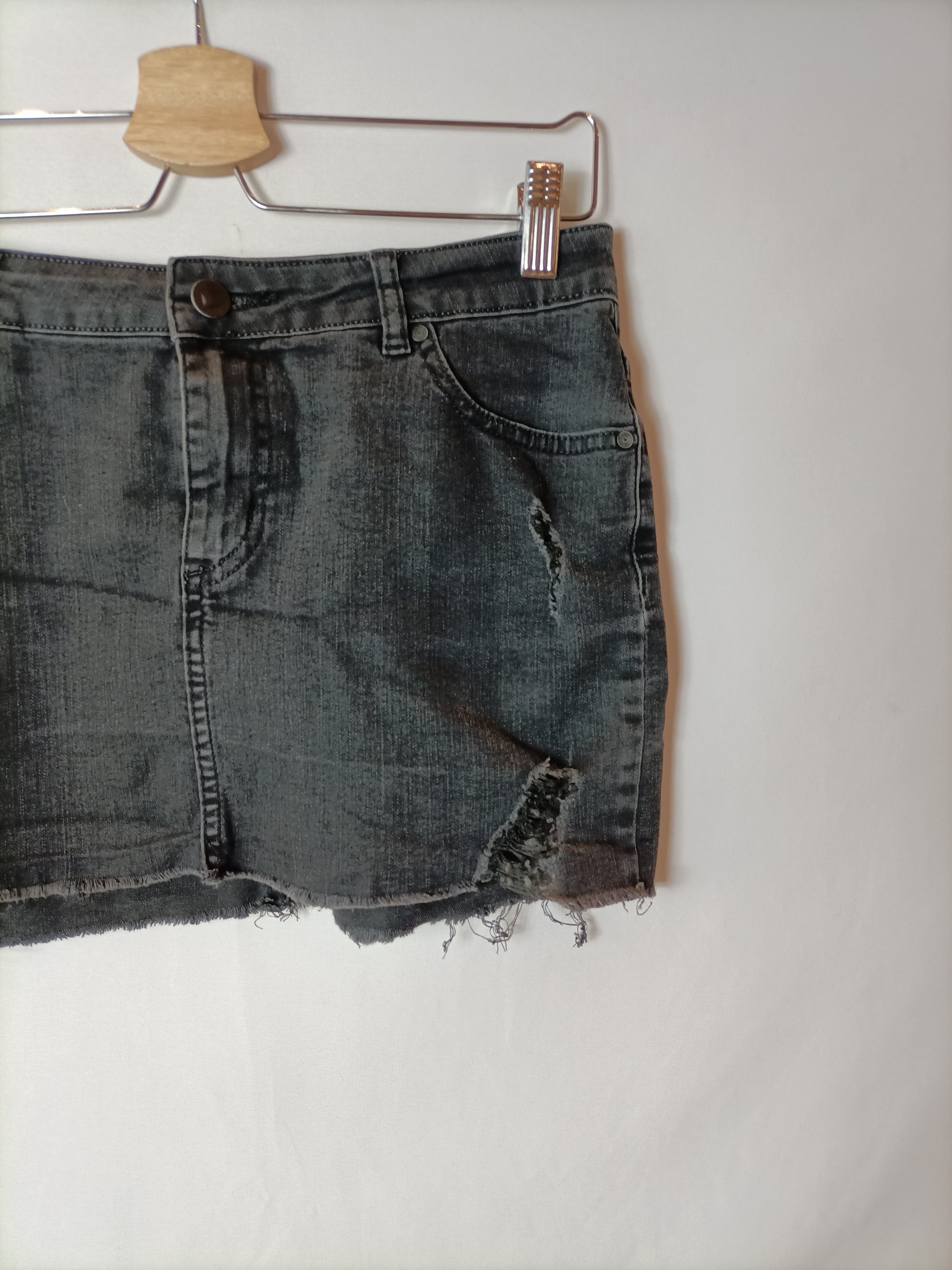falda corta denim rotos. cintura 36 cm largo 31 cm
