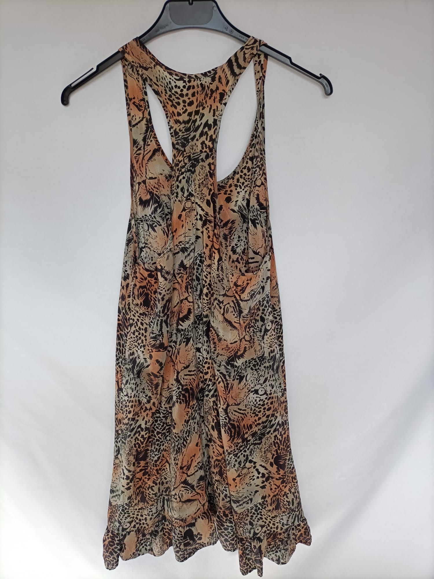 Rapsodia. M. Vestido corto animal print con volante. No elástico. De sisa a sisa 51 cm largo 88 cm