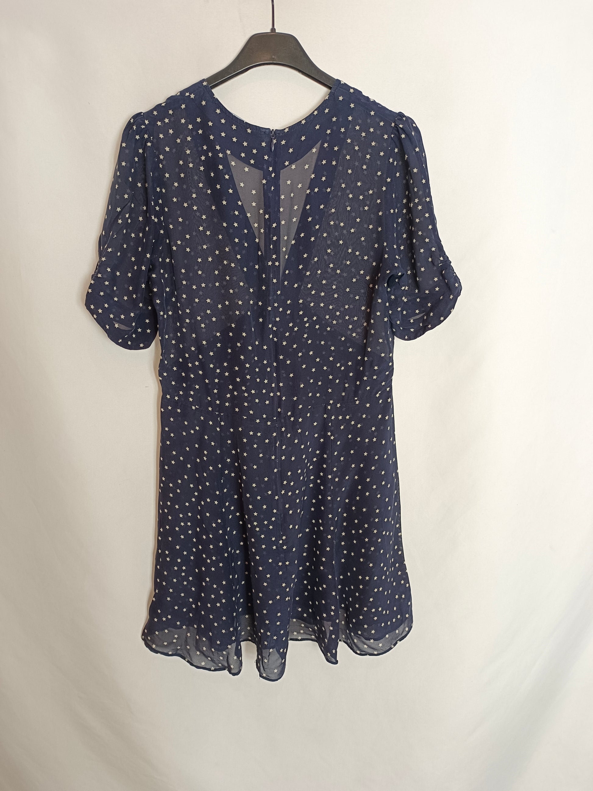 RÉALISATION. Vestido seda azul estrellas T.s