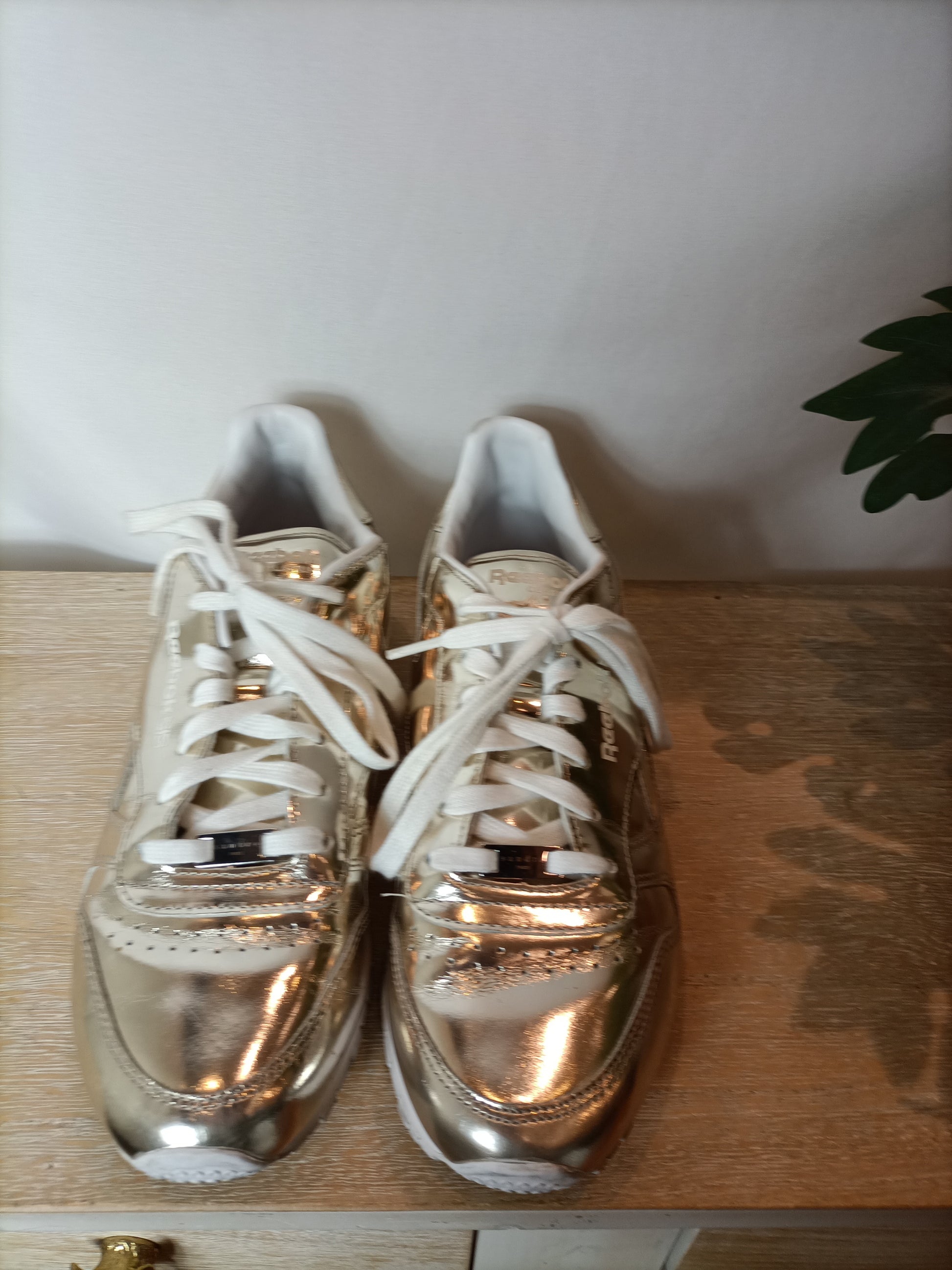 Zapatillas plateadas. Suela prácticamente sin uso. Tiene alguna macha en la suela en el lateral