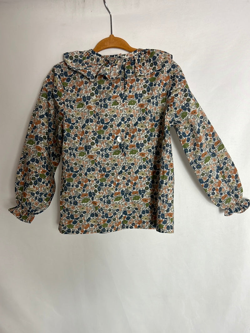 REGINA FOR KIDS. Blusa flores mini tonos azules y marrones. T 3 años