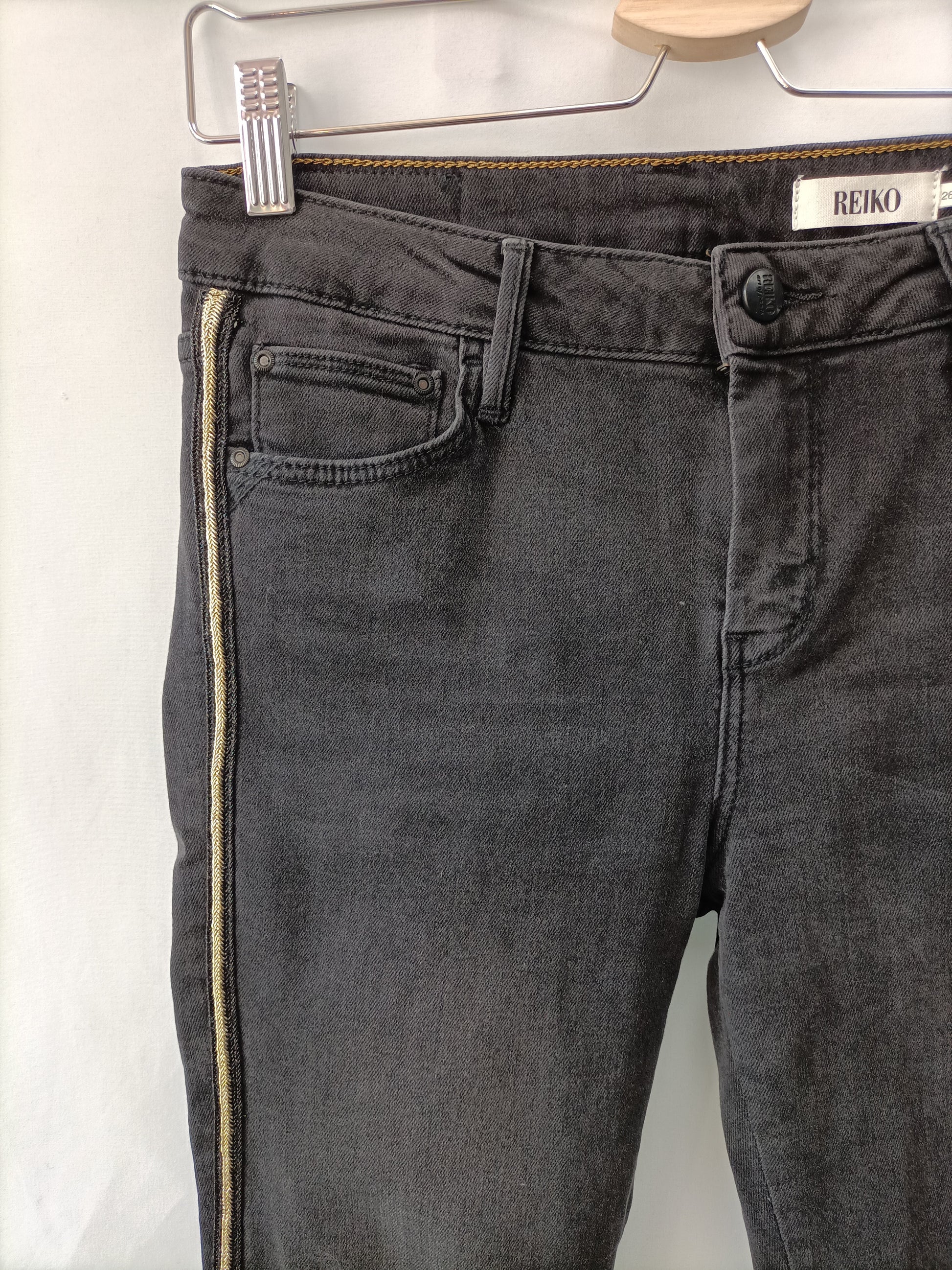 REIKO. Pantalón negro tira lateral T.36