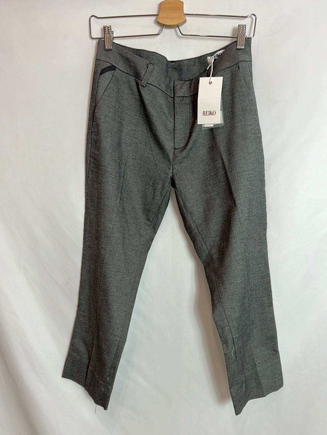 REIKO. Pantalones cropped pinzas jaspeado. T 27 (38)