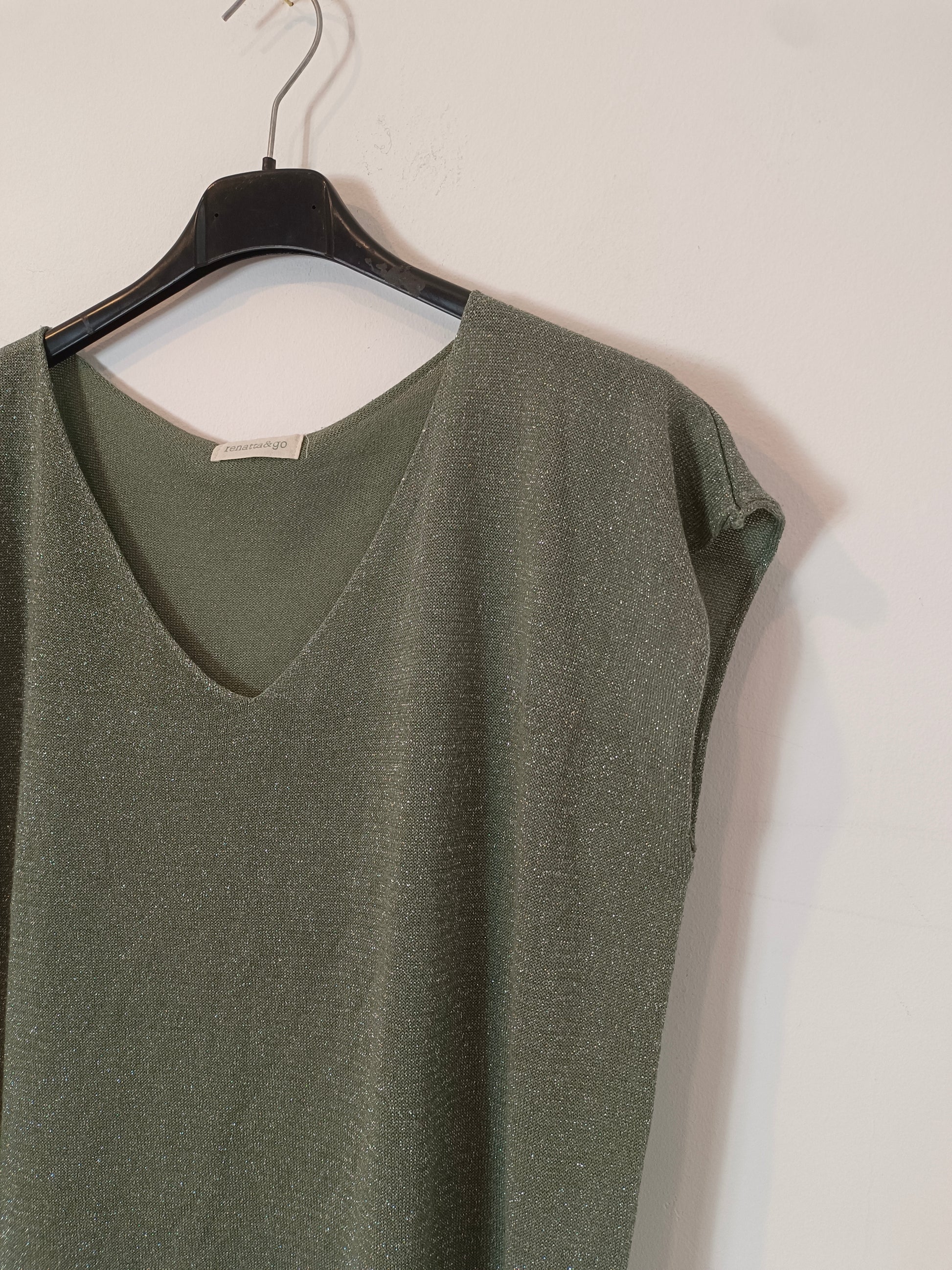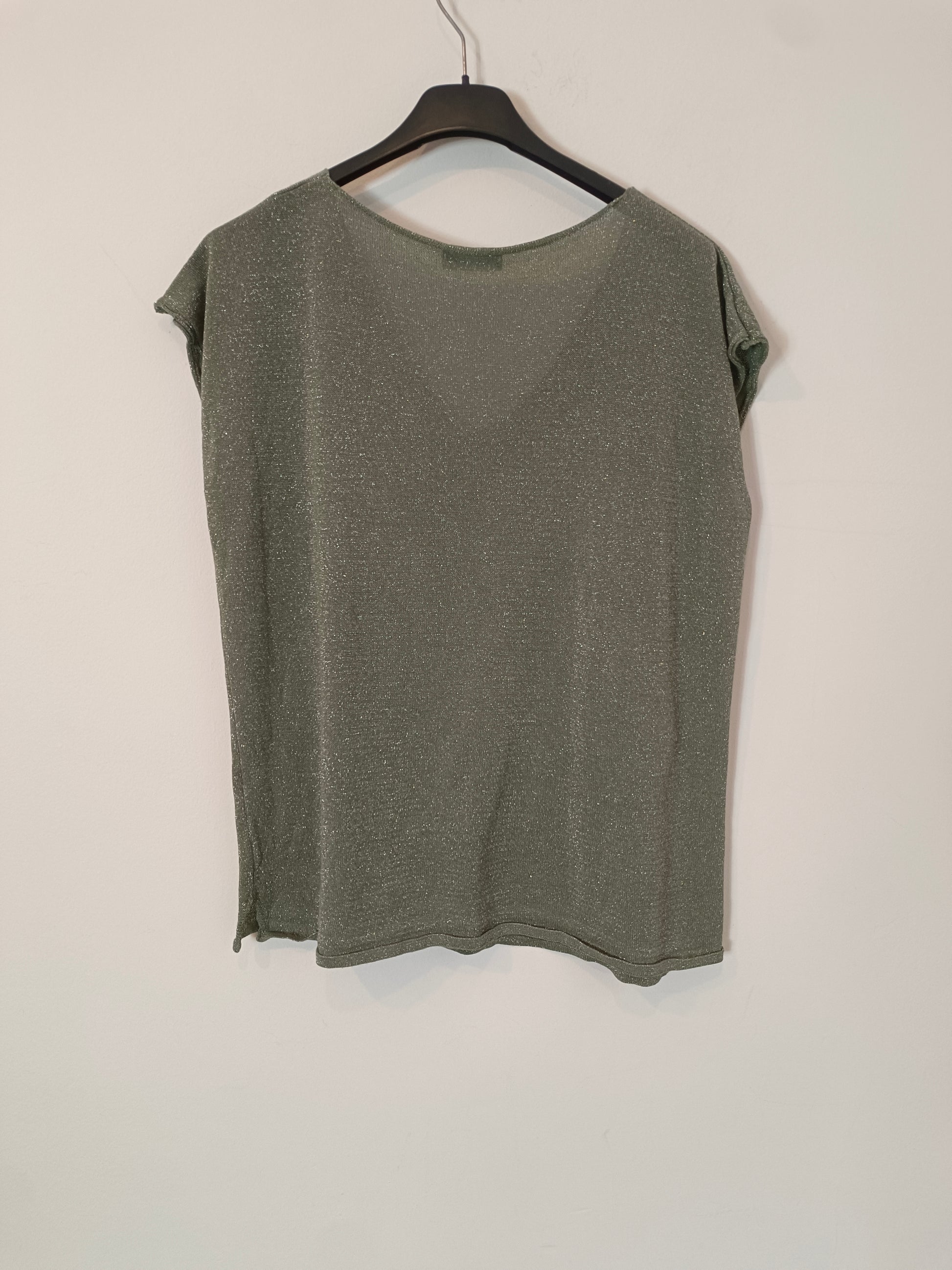 Camiseta verde fluida de punto con detalle de hilos plateados