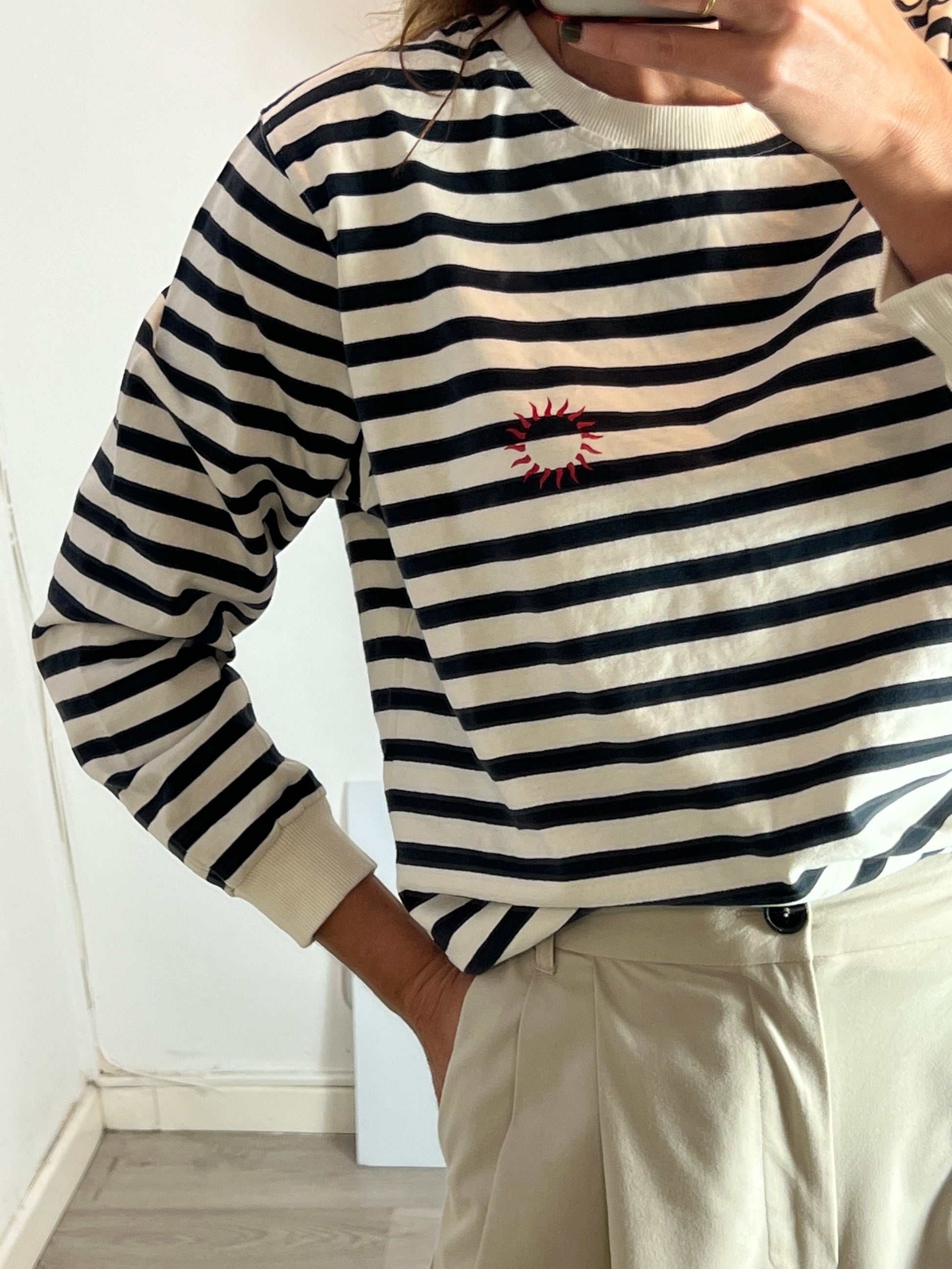 Sudadera rayas azules detalle bordado