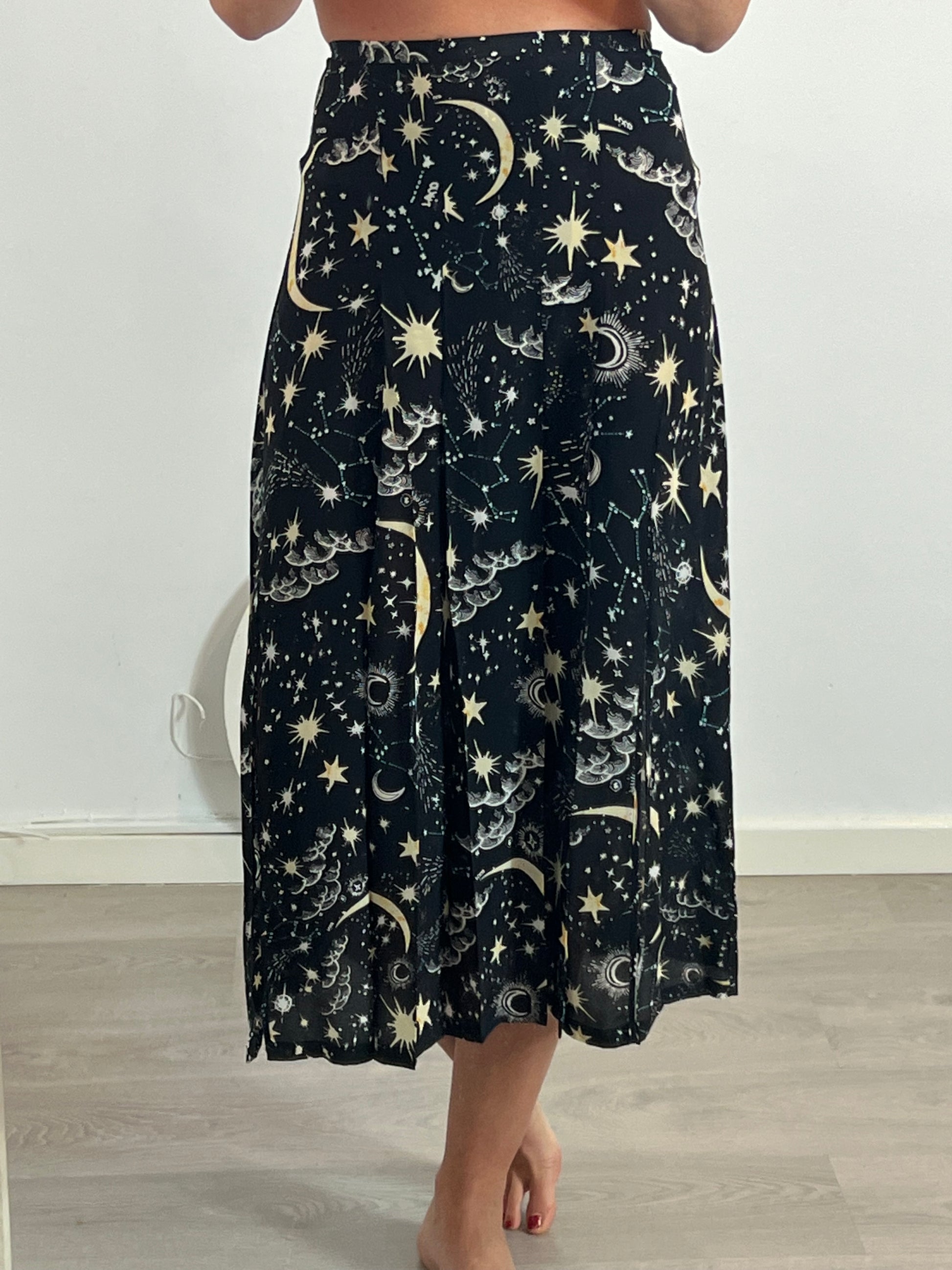 falda midi negra de seda con estampado cintura 34cm, largo 83cm