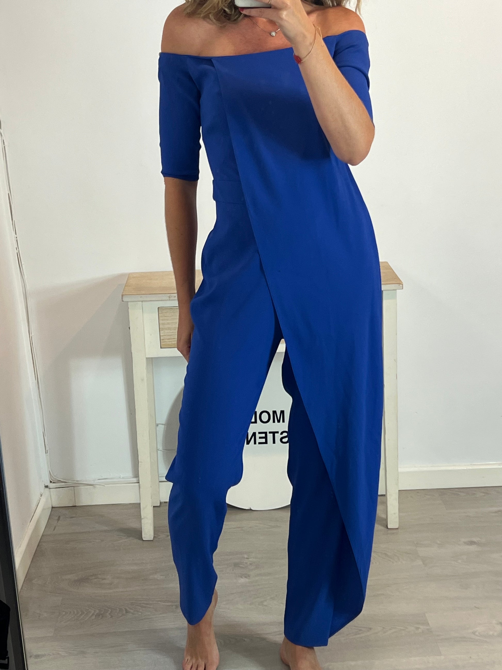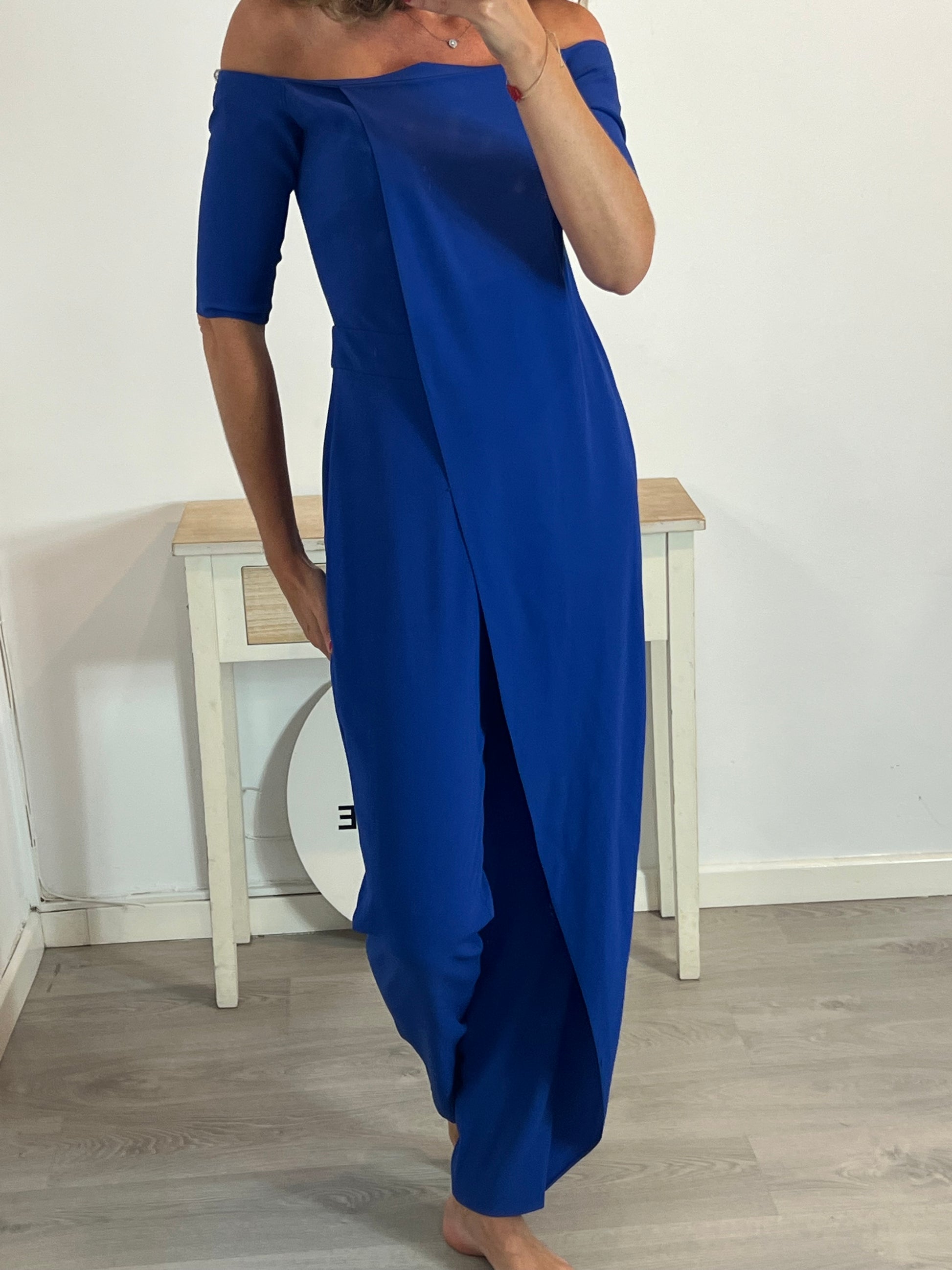 Mono azul Klein detalle solapa. T 40 largo 145 cm , de sisa a sisa 41cm, cintura 38cm