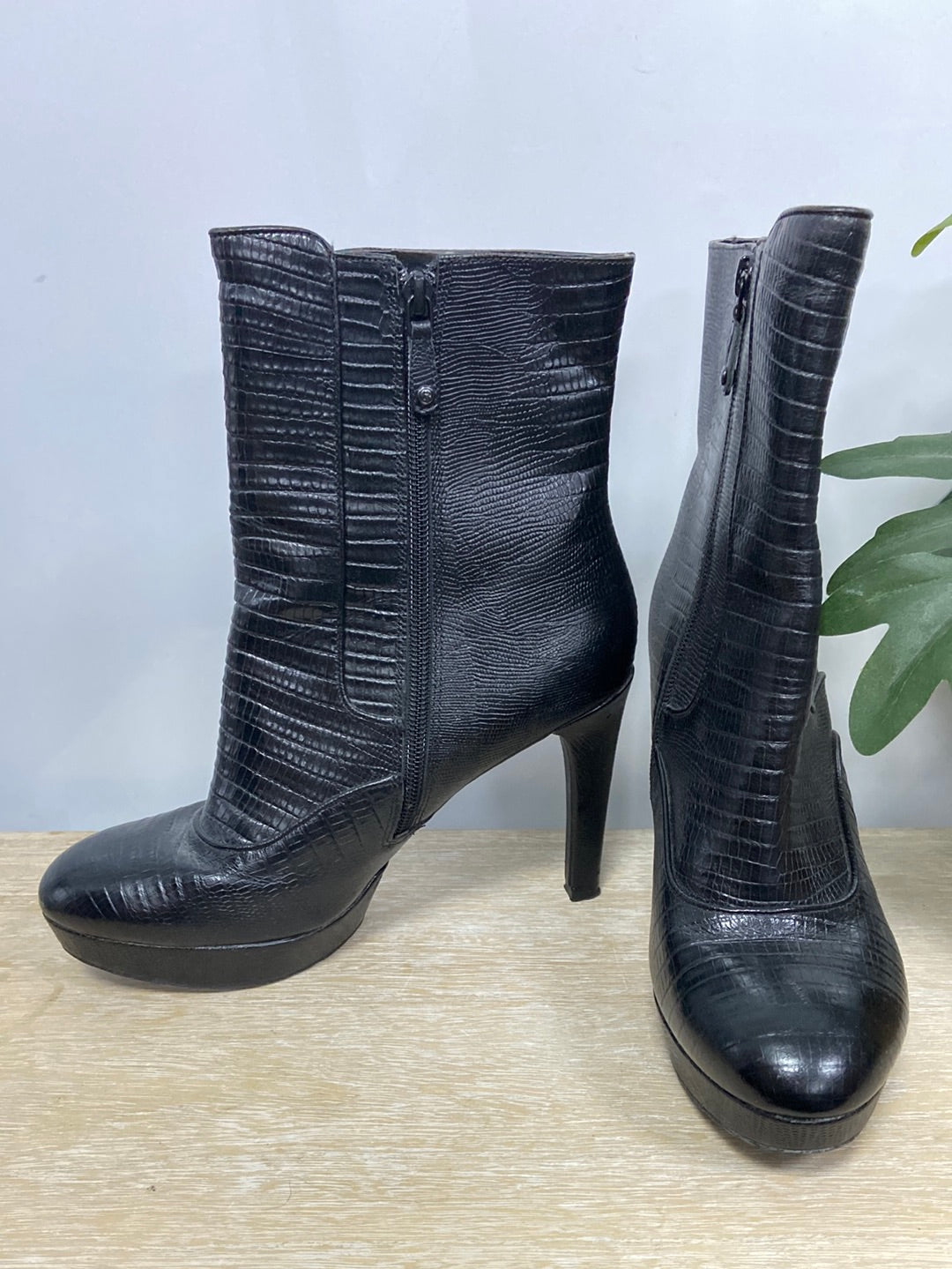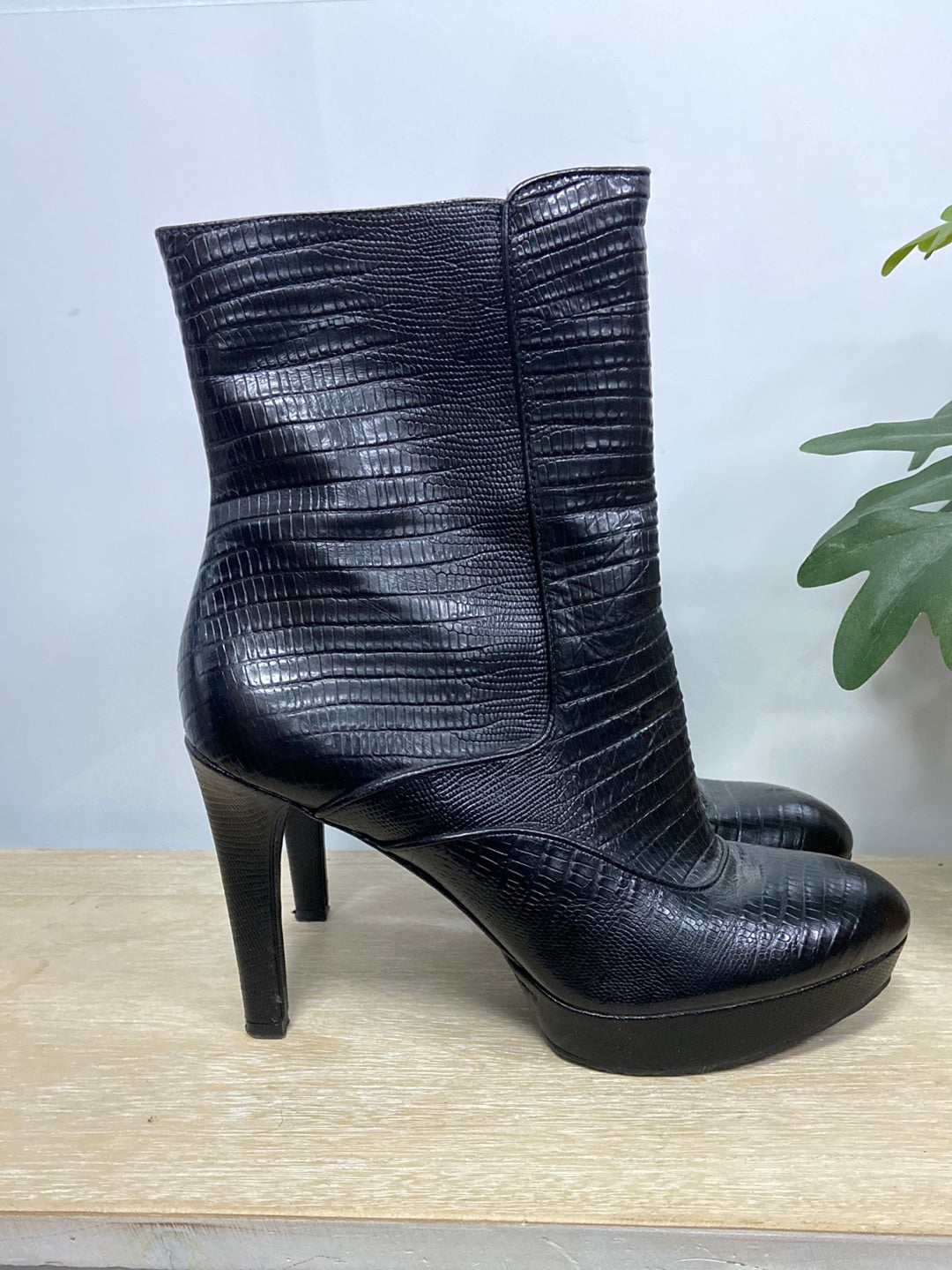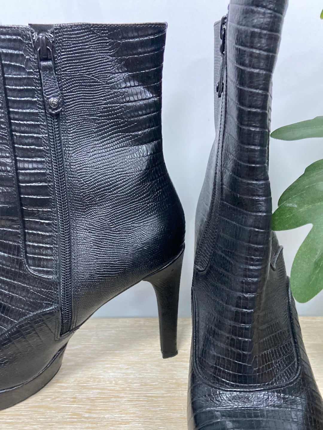 Botines negro de tacón con plataforma de polipiel estilo serpiente. Tacón 11 cm largo 3 cm