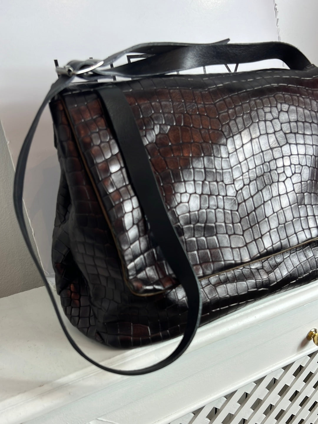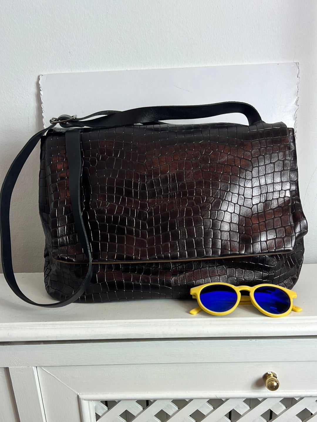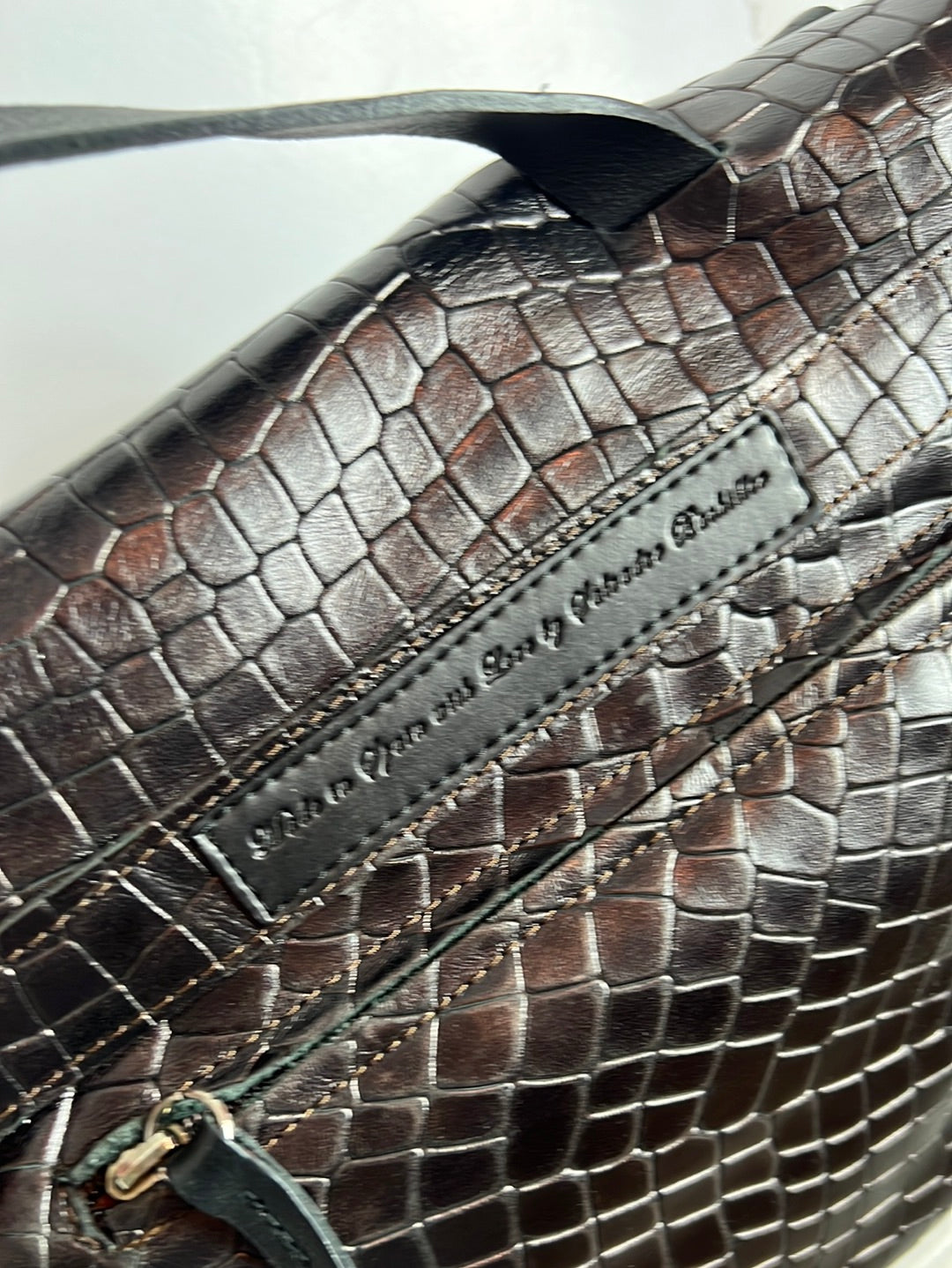 Bolso piel troquelada mediano marrón oscuro.37cmx26cm
