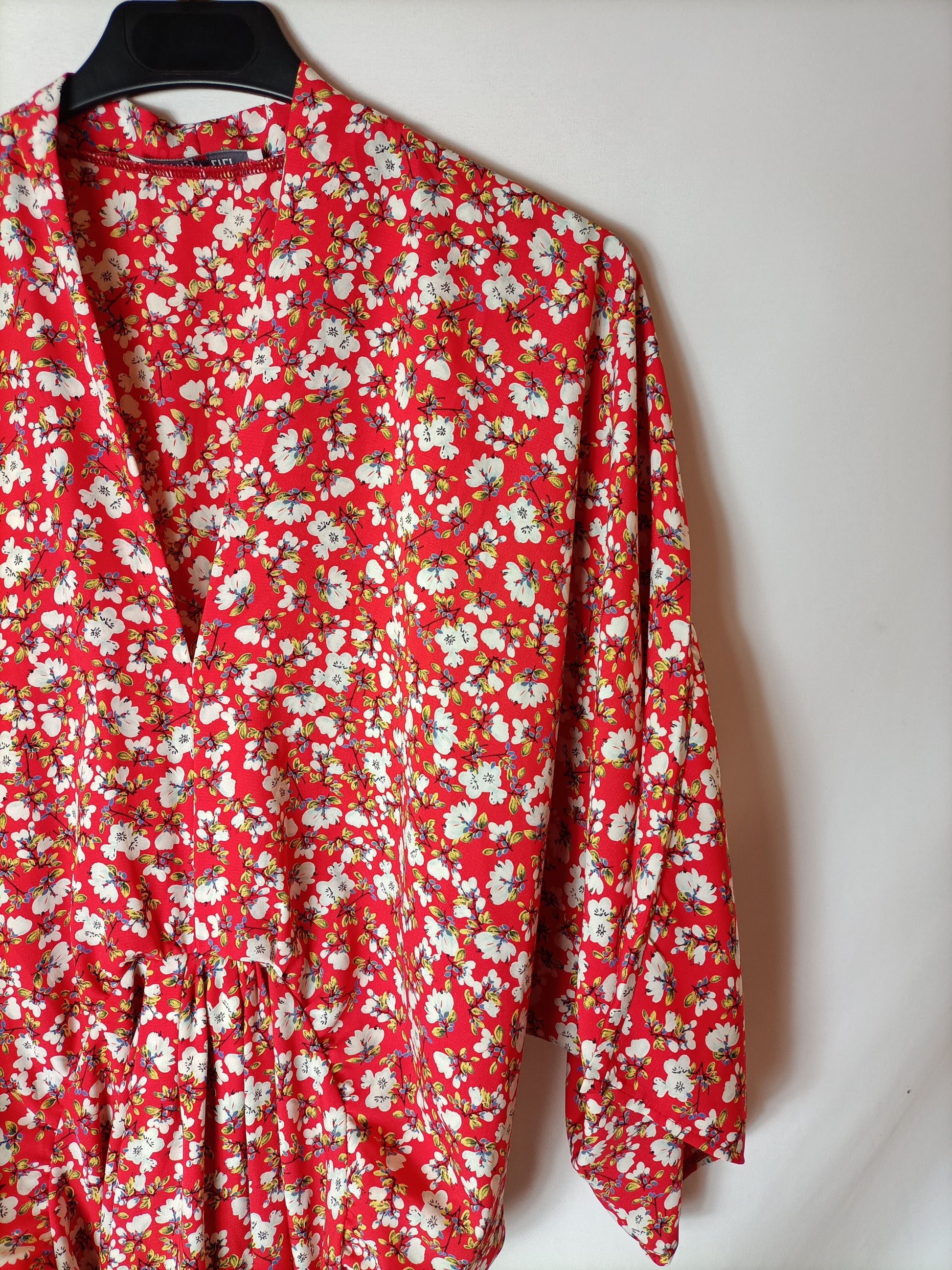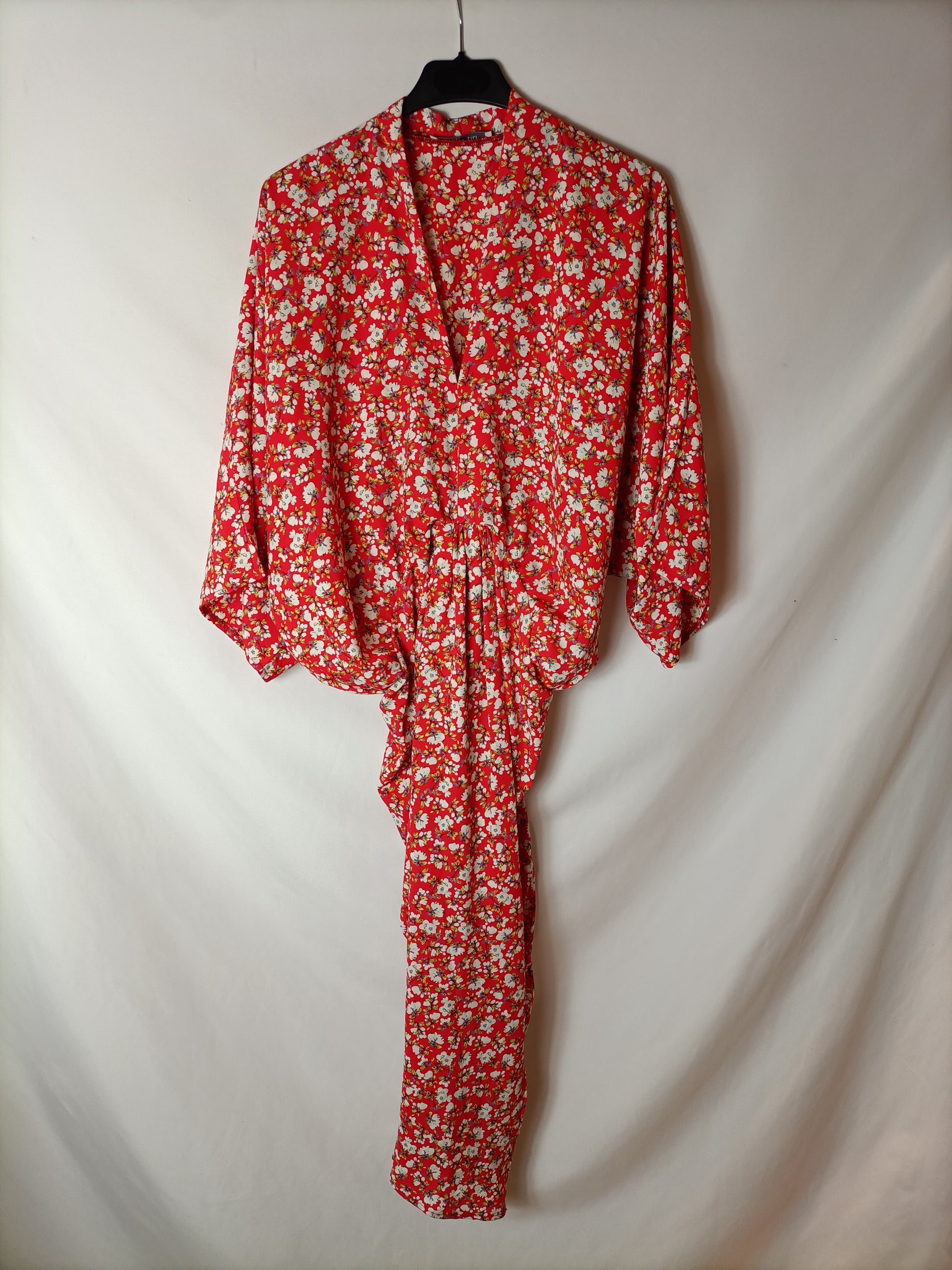 SAM&LILI Vestido rojo estampado manga murciélago. T S