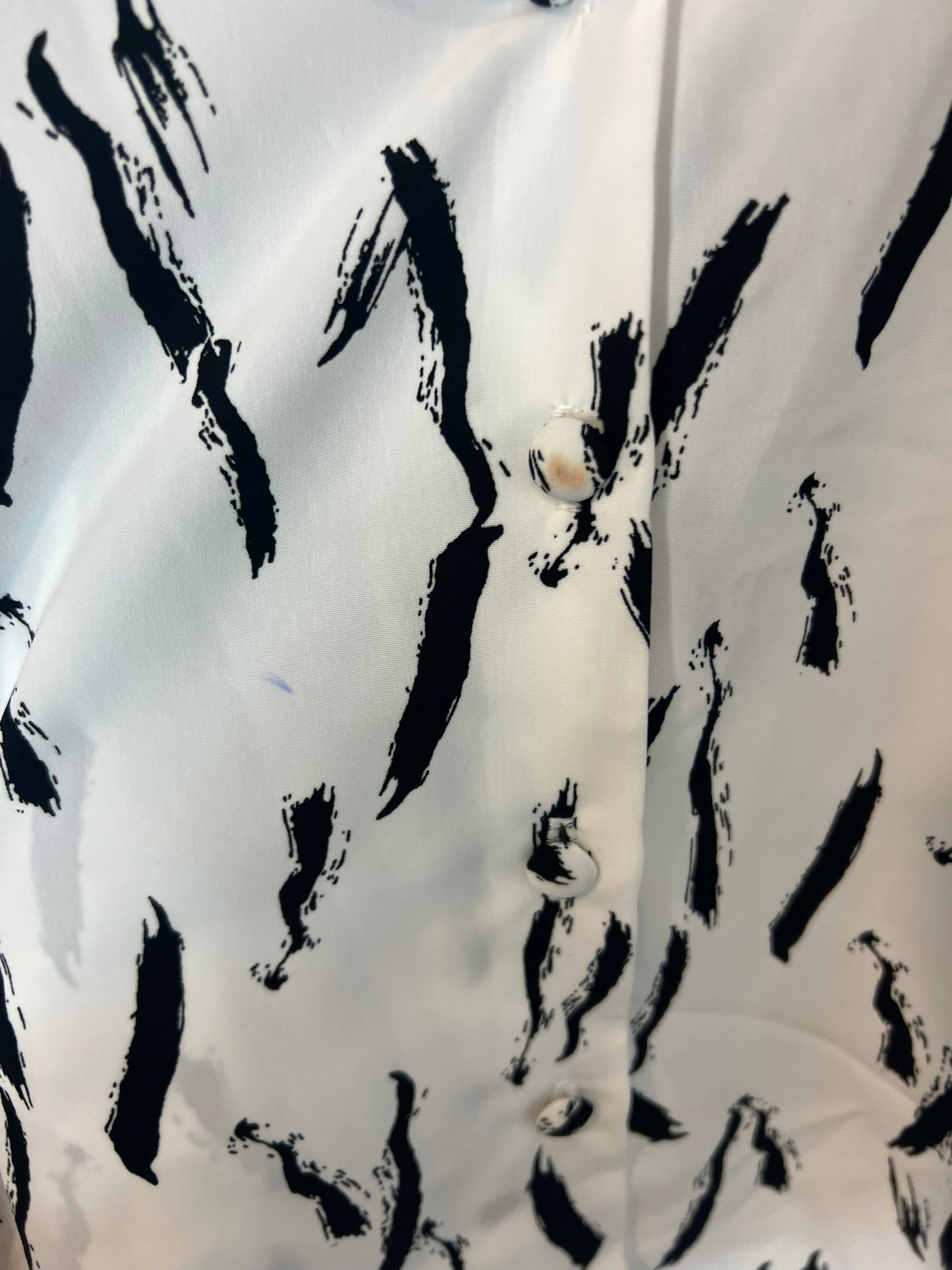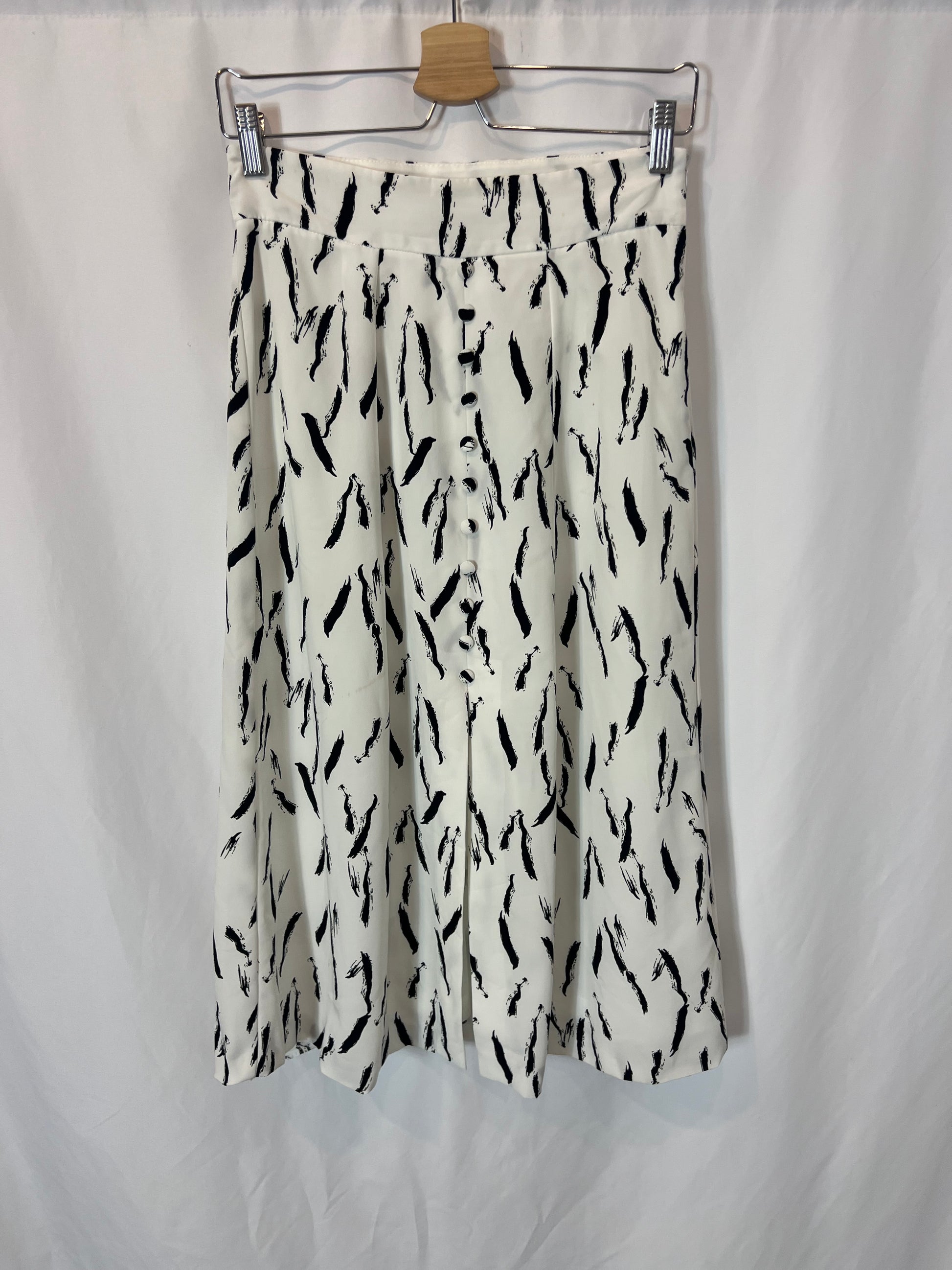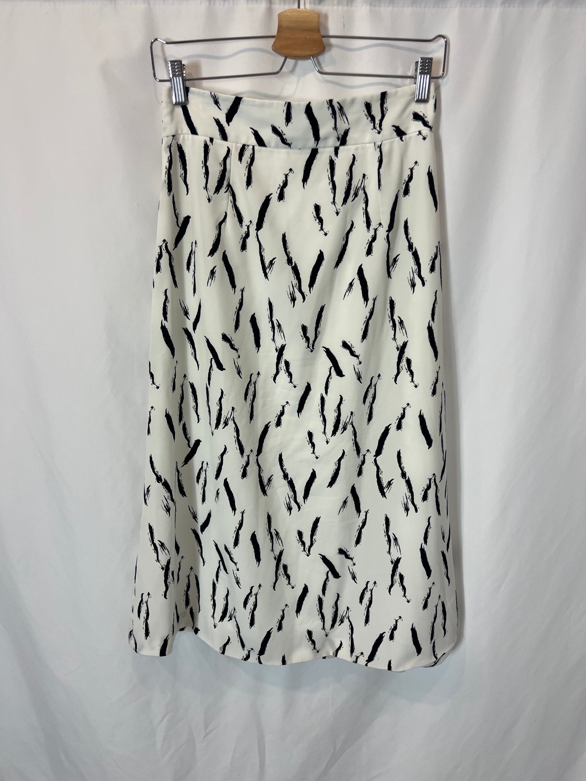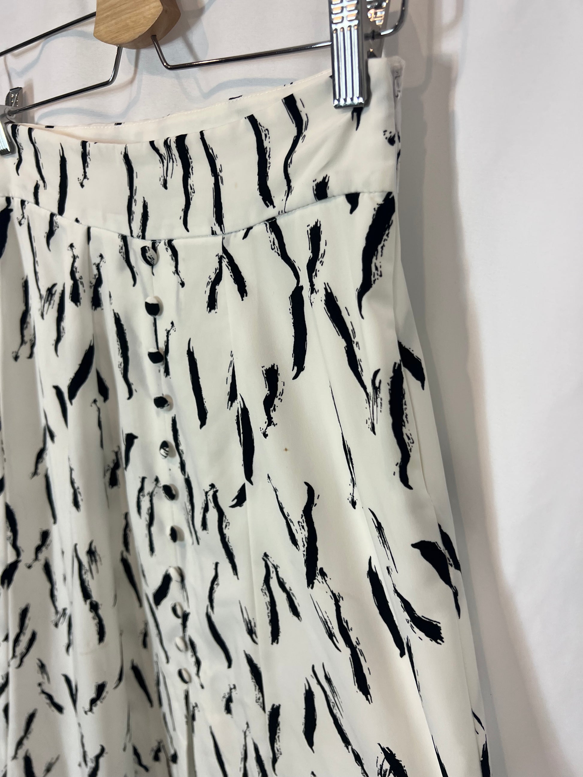 Total look blusa (m) y falda (s) fluida con estampado en negro. Tara:mini mancha falda y mancha top en botón (foto) . Blusa: de sisa a sisa 49cm, largo 51cm. Falda: cintura 45cm, largo 79cm