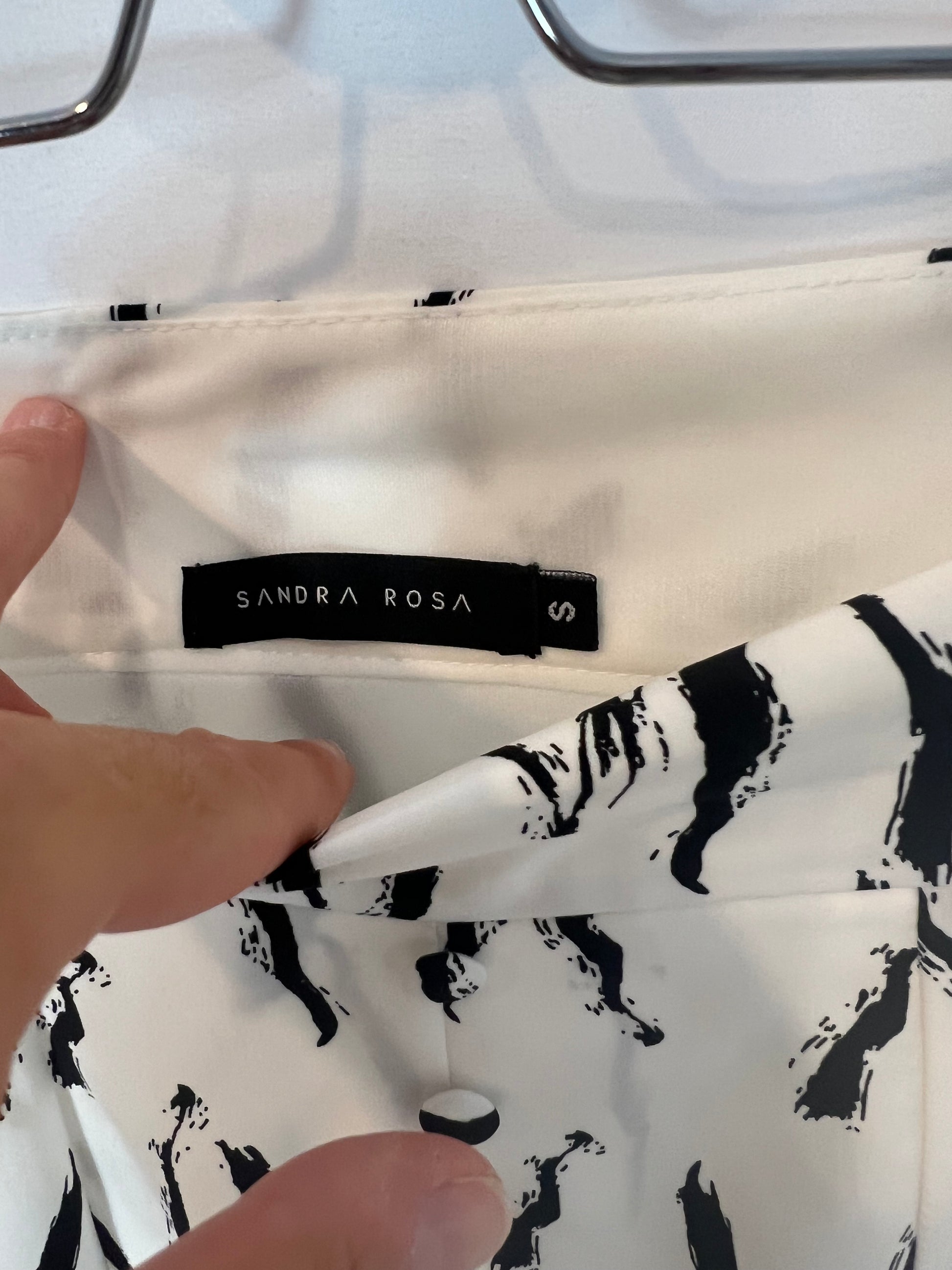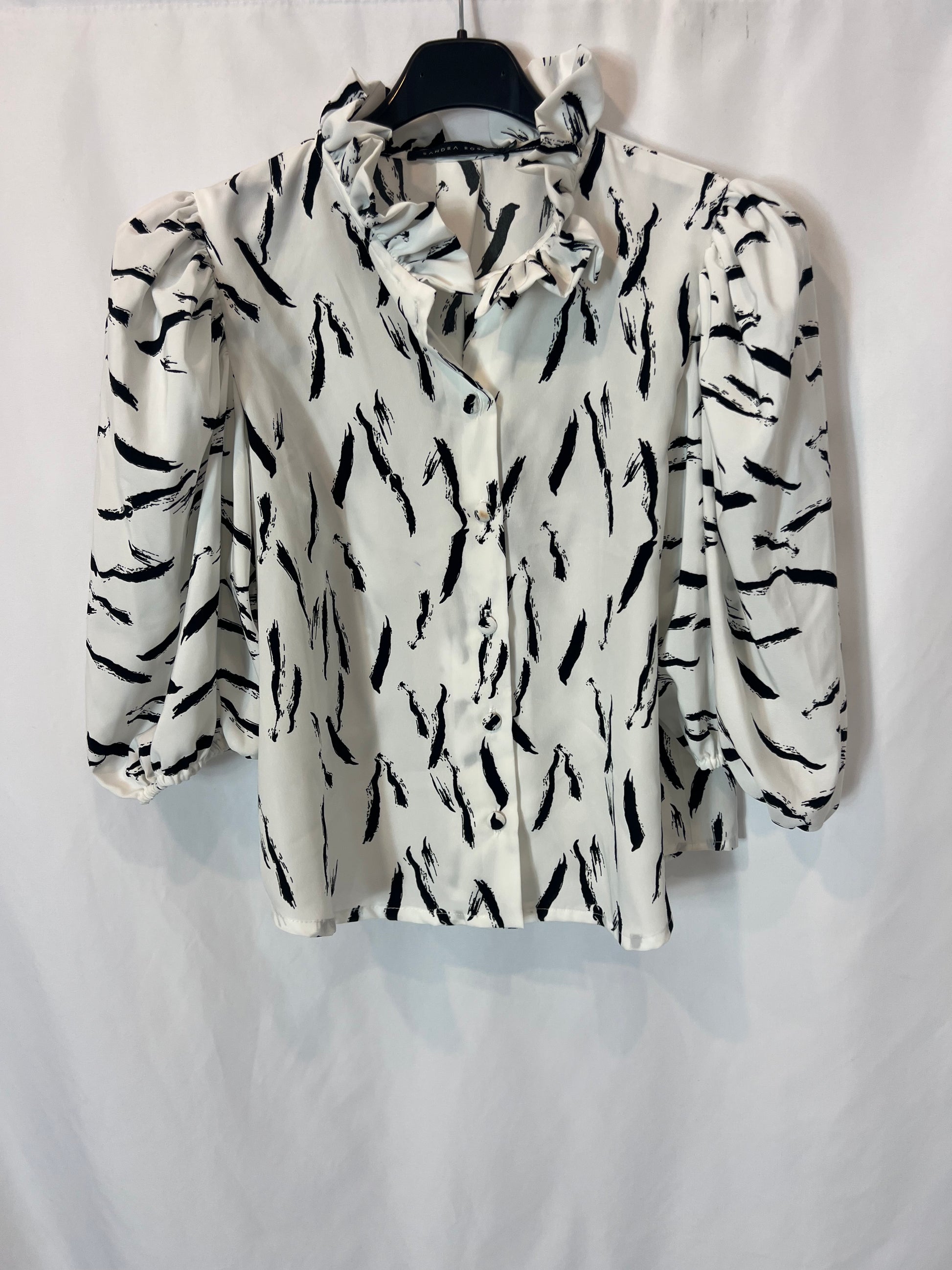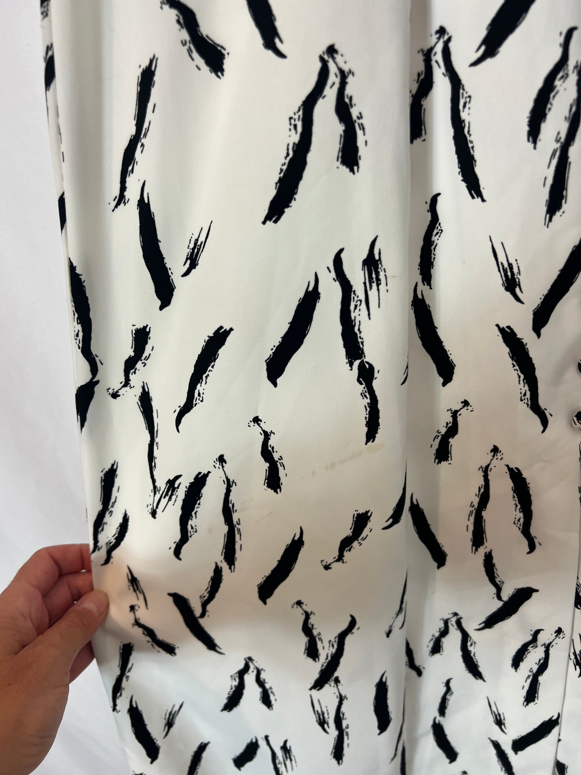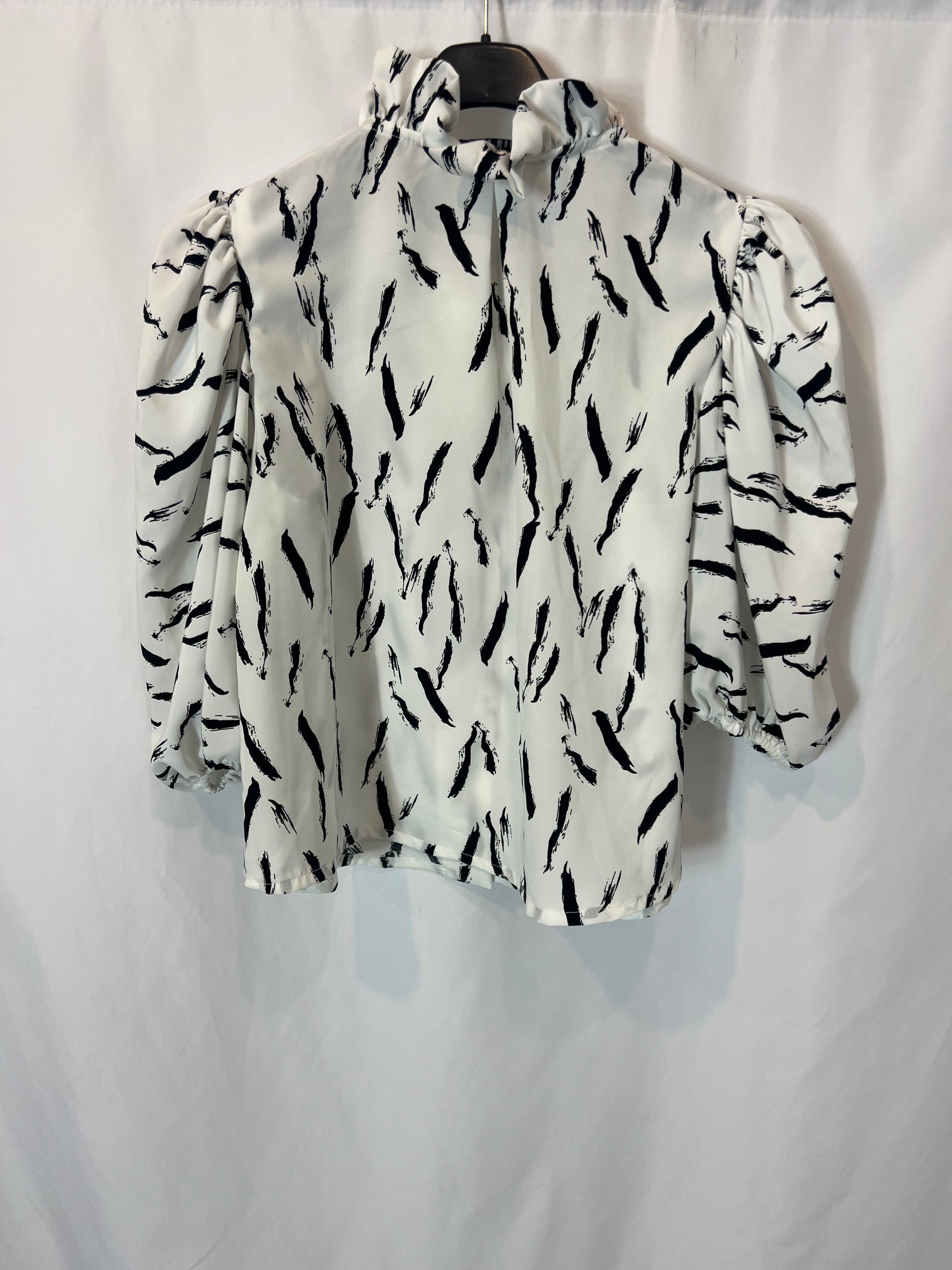 Total look blusa (m) y falda (s) fluida con estampado en negro. Tara:mini mancha falda y mancha top en botón (foto) . Blusa: de sisa a sisa 49cm, largo 51cm. Falda: cintura 45cm, largo 79cm