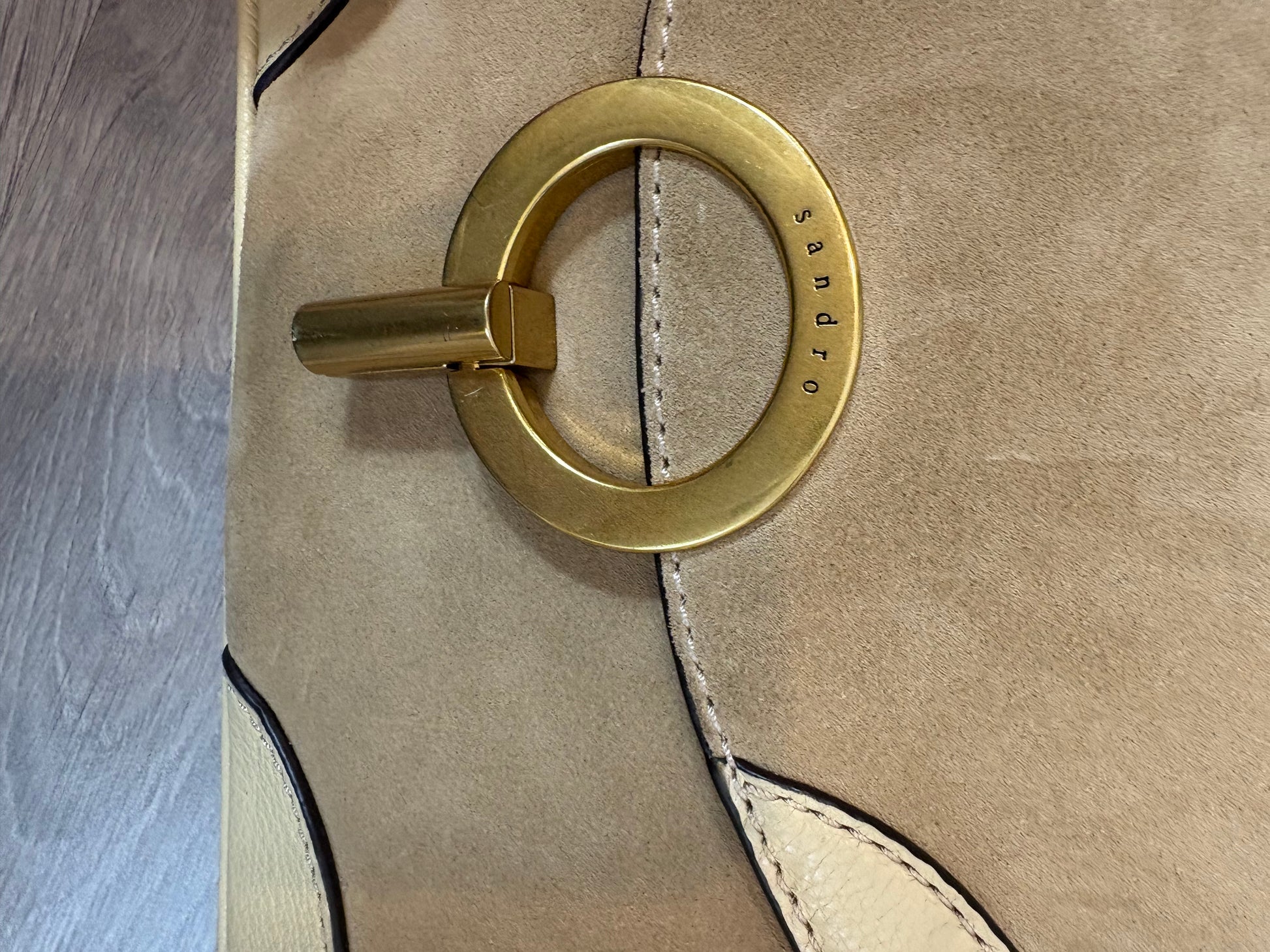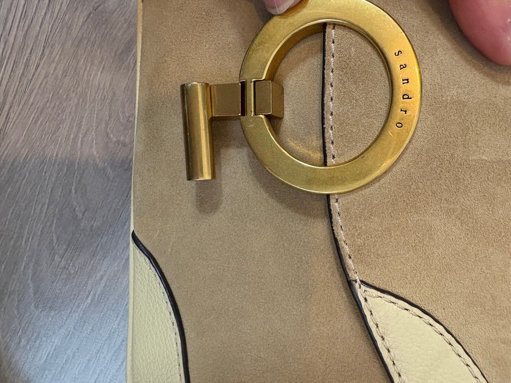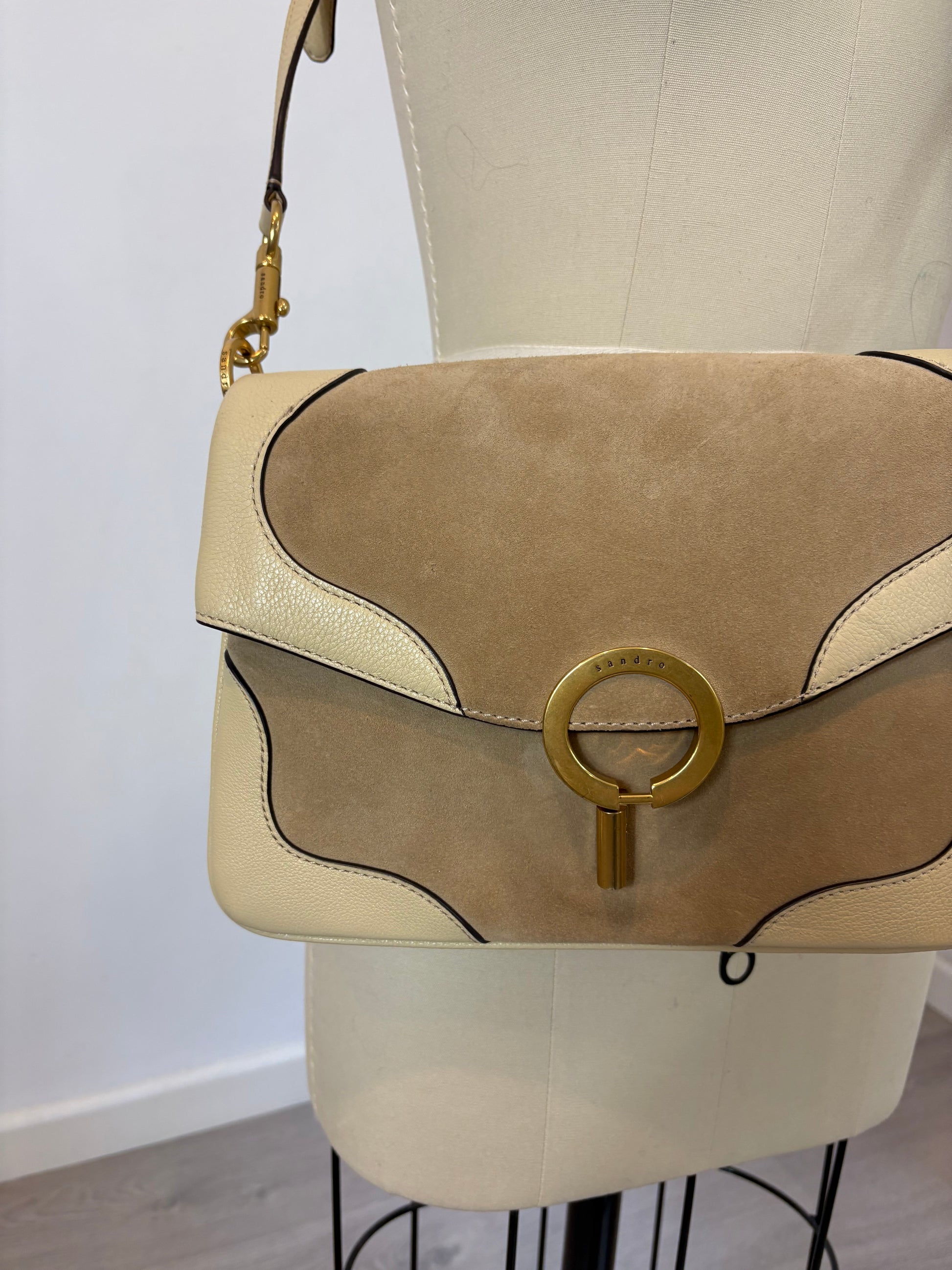 SANDRO. Bolso beige piel doble textura