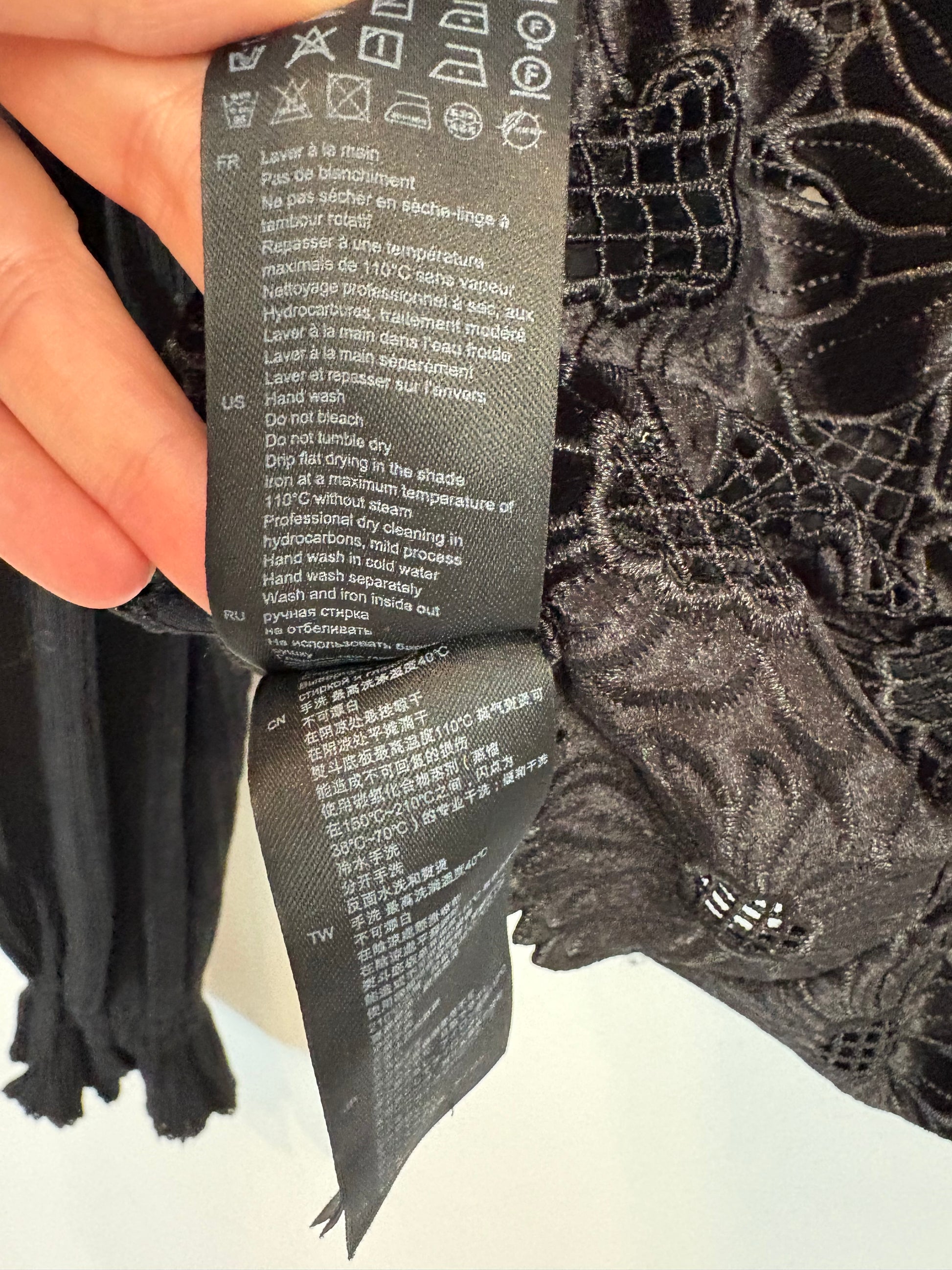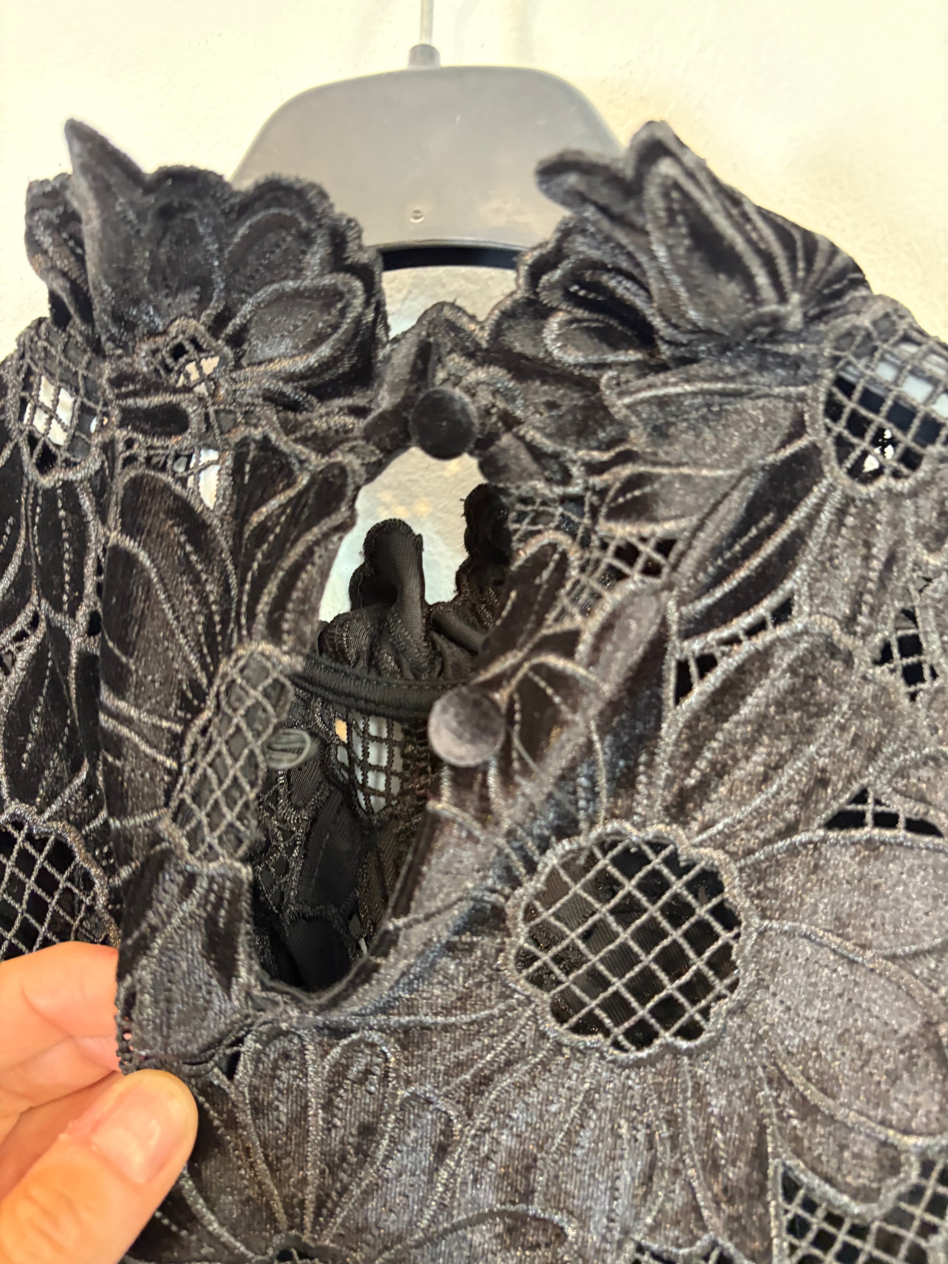 Top negro doble textura con parte delantera de encaje negro. de sisa a sisa 45 cm largo 49 cm