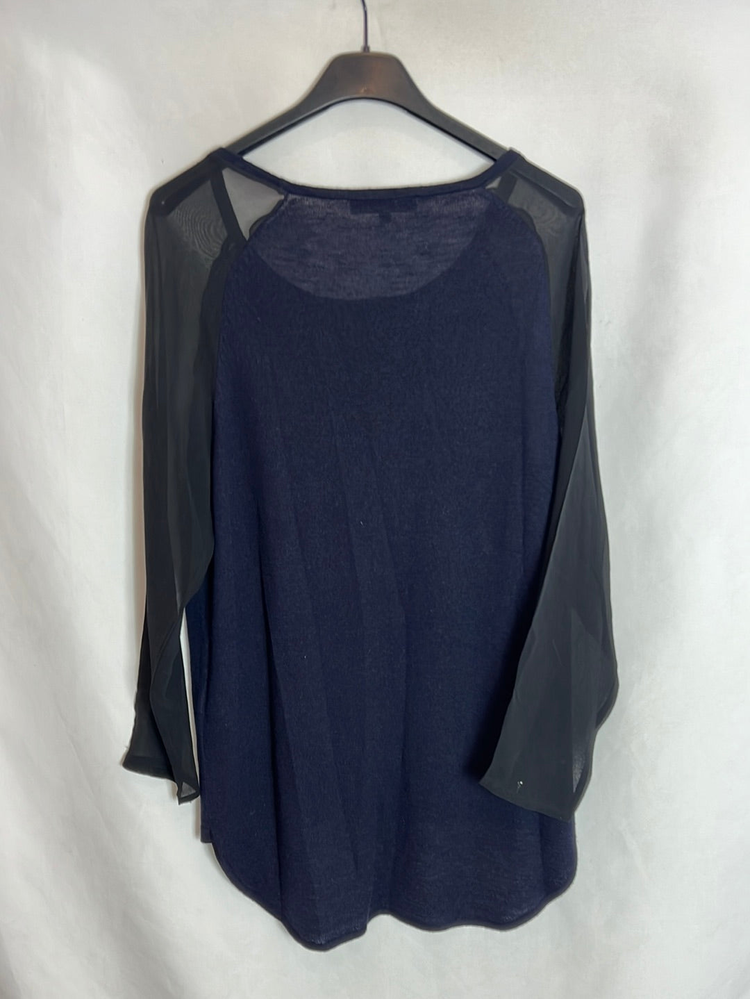Top punto azul manga semitransparente . de sisa a sisa 47cm , largo 73cm parte trasera
