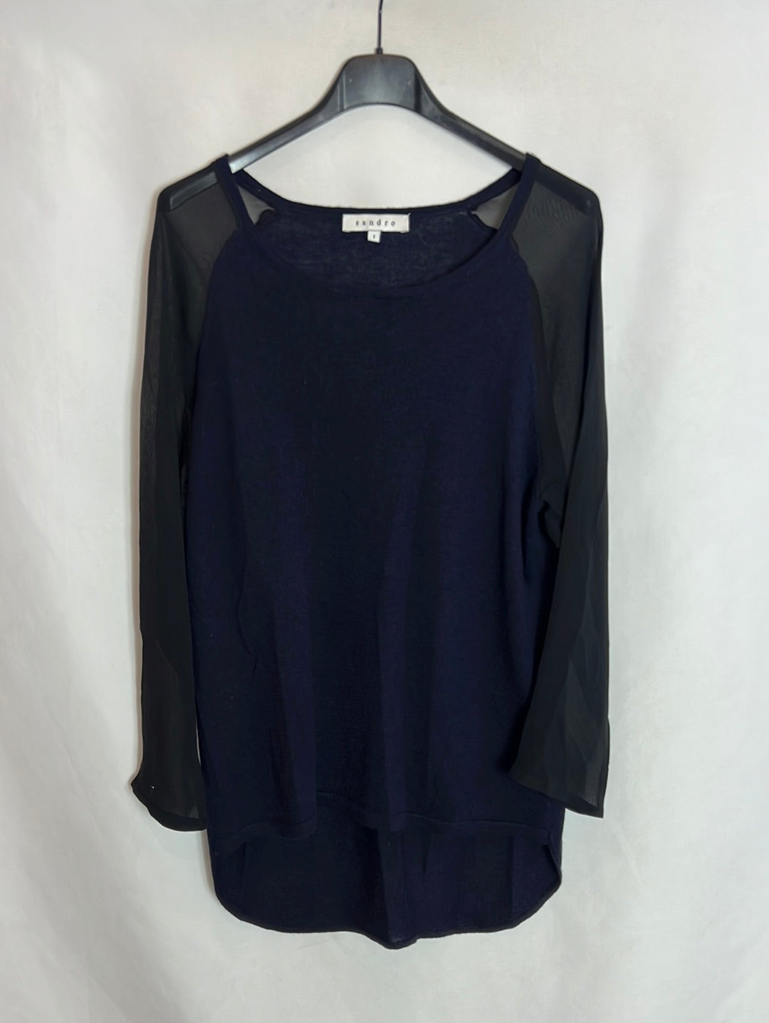 SANDRO. Top punto azul manga semitransparente . T 1(S)
