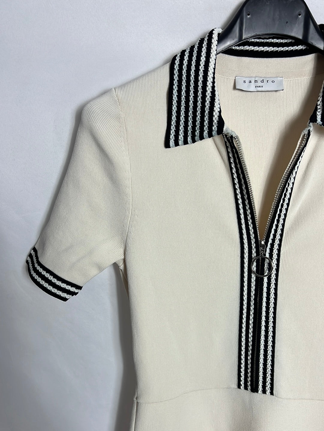 SANDRO. Vestido punto elástico color crudo. T XS/S