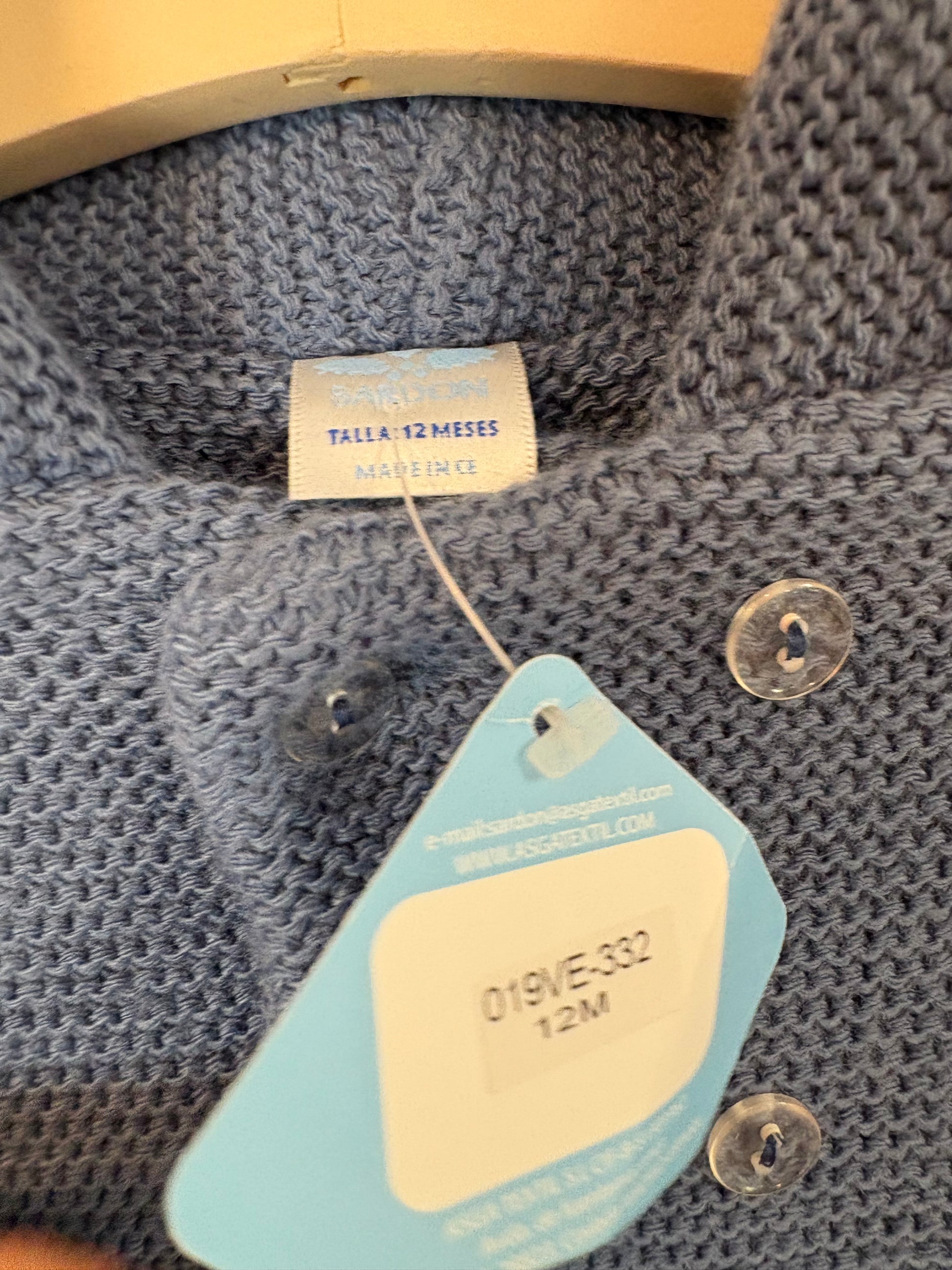 SARDON. Chaqueta punto capucha azul. T 12 meses