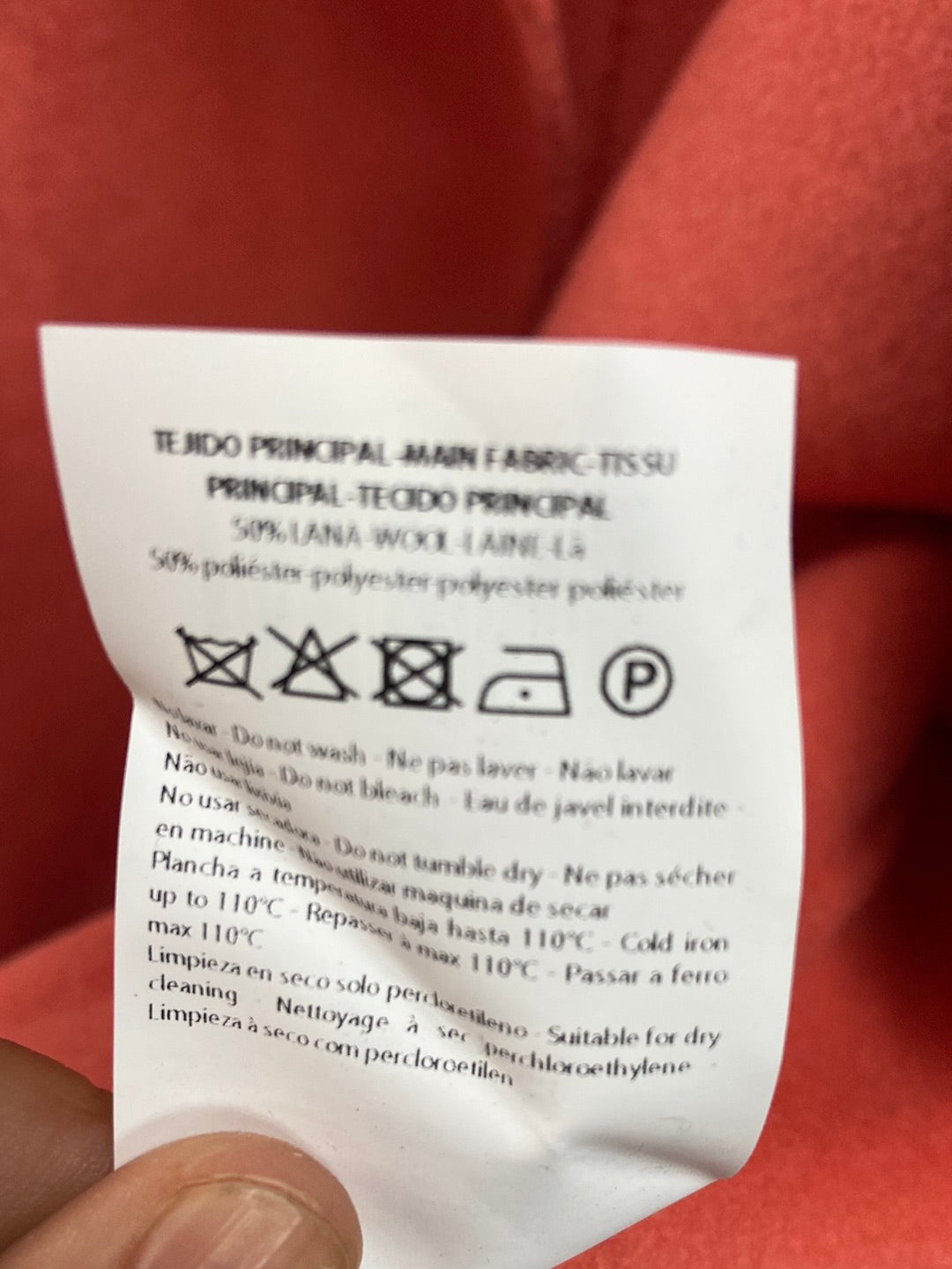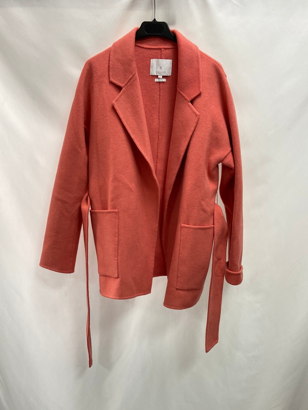 Abrigo de paño, no tiene botones, se abrocha con el cinturón.largo 77 cm