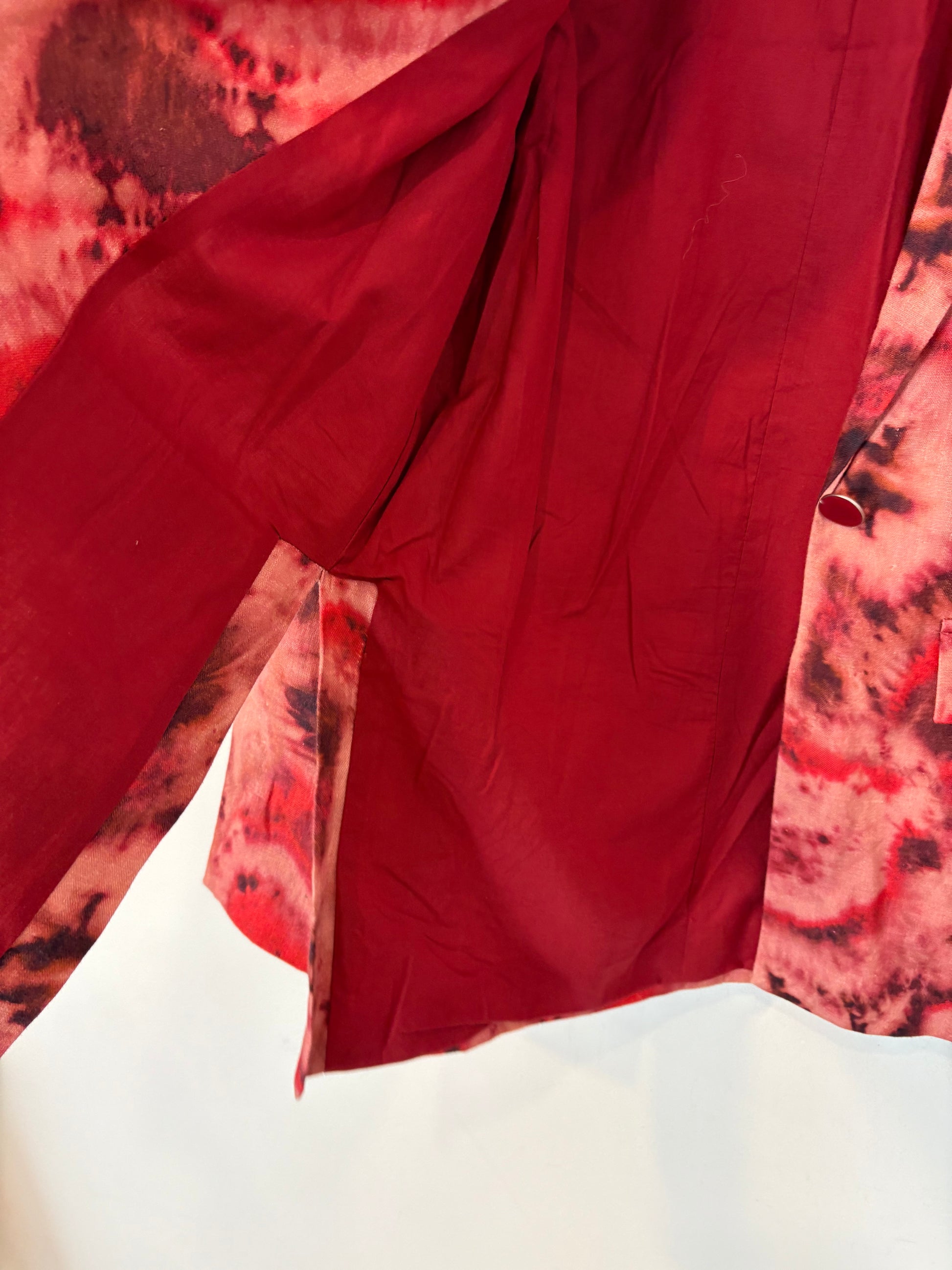 Pantalón: Cintura 37 cm, largo 97 cm. Blazer: Espalda 52 cm, largo 69 cm