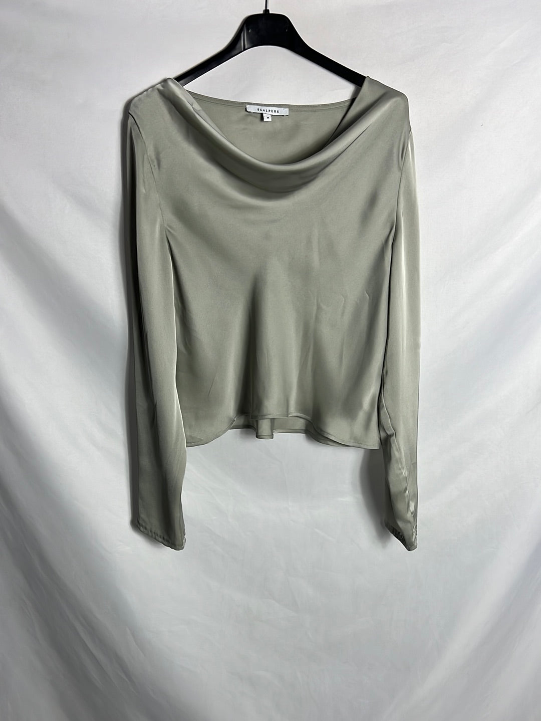 total look gris de tejido satinado. Falda TS: cintura 33cm, largo 93cm top T M:,talla como una S/M de sisa a día 44cm, largo 49cm
