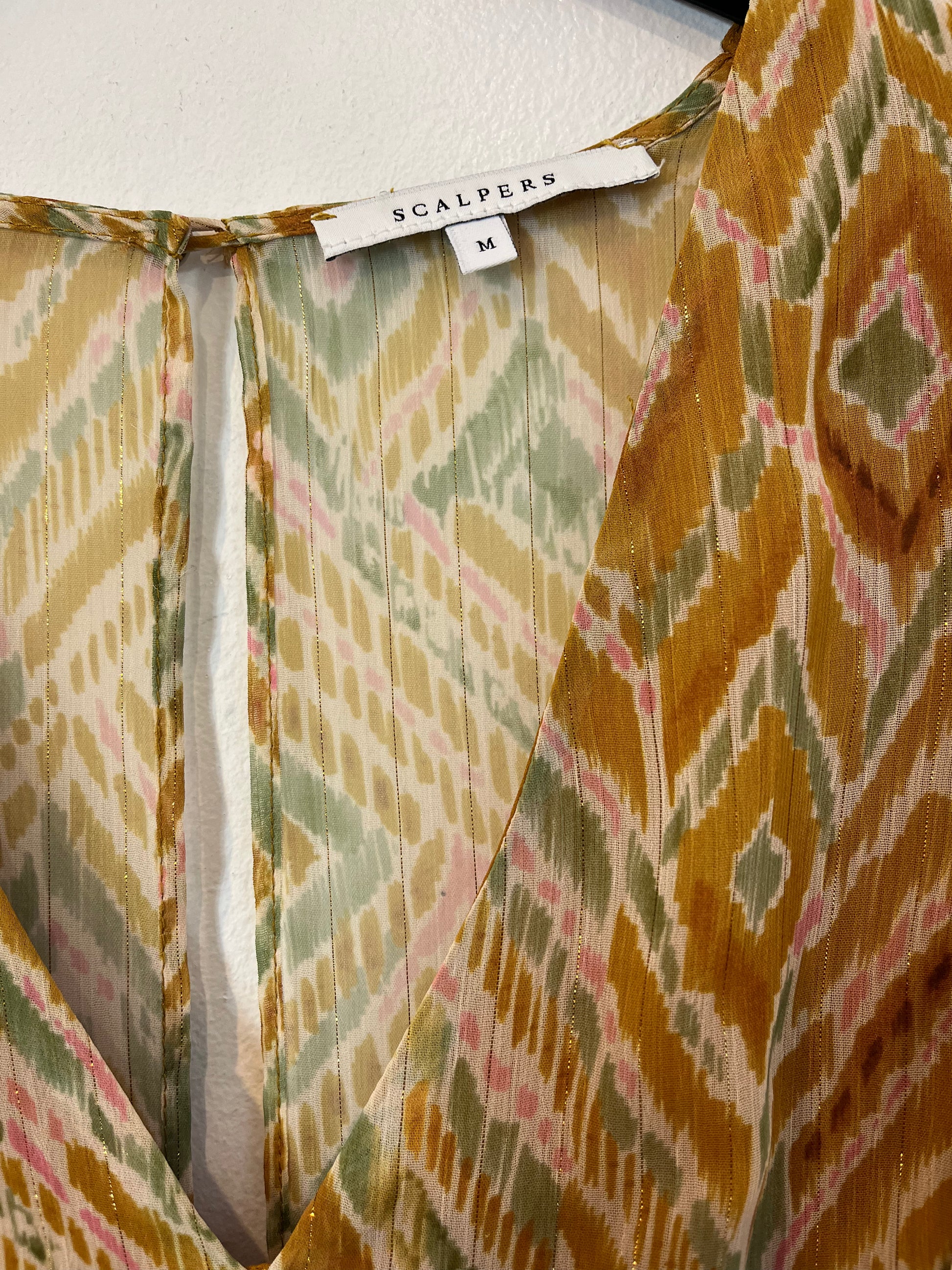 Detalle hilos dorados. Largo 134 cm, cintura 43 cm.