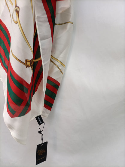 Pañuelo grande con estampado de cadenas doradas, 100% seda. NUEVO CON ETIQUETA