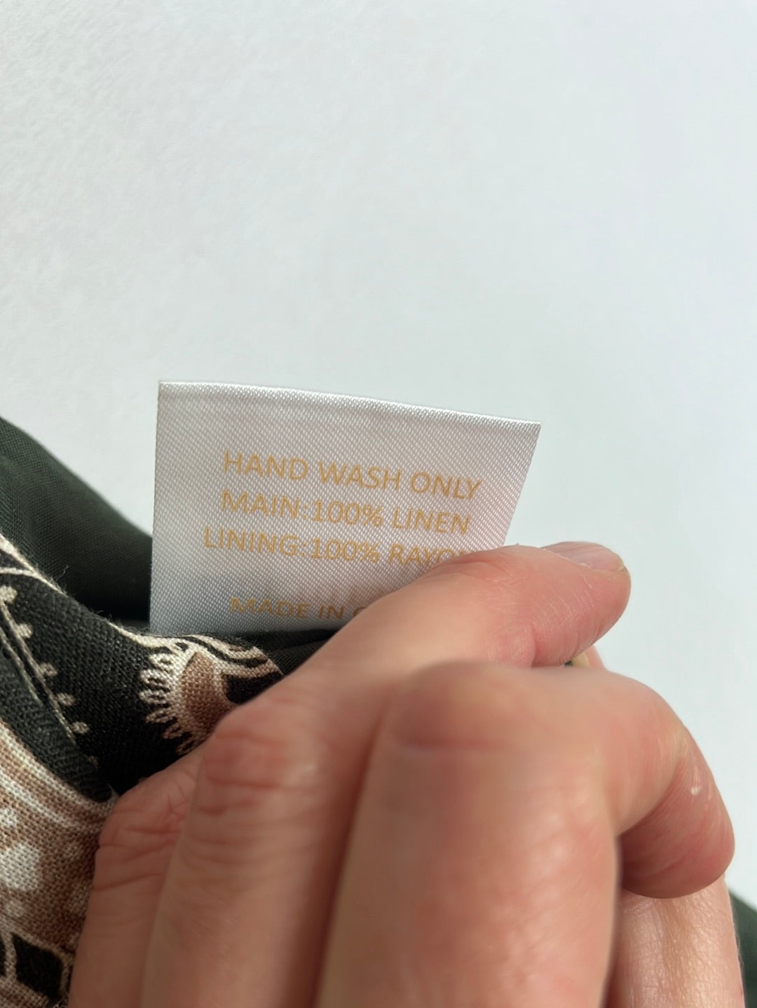 Falda corta cruzada lino estampado. Cintura ajustable, largo 44cm