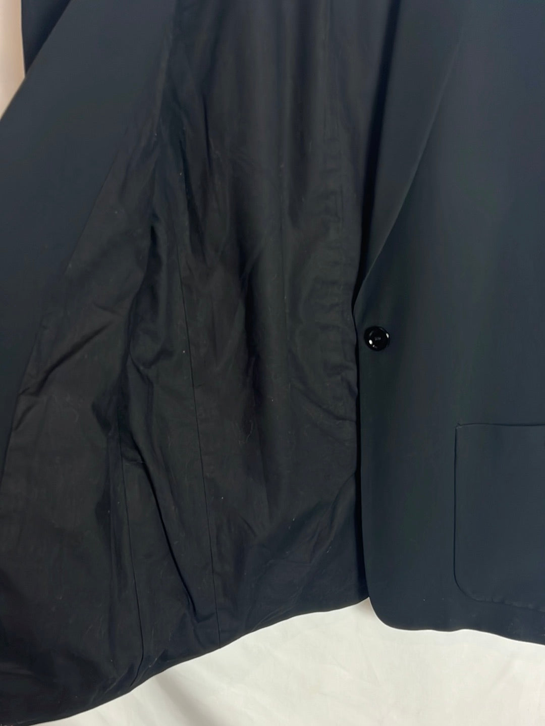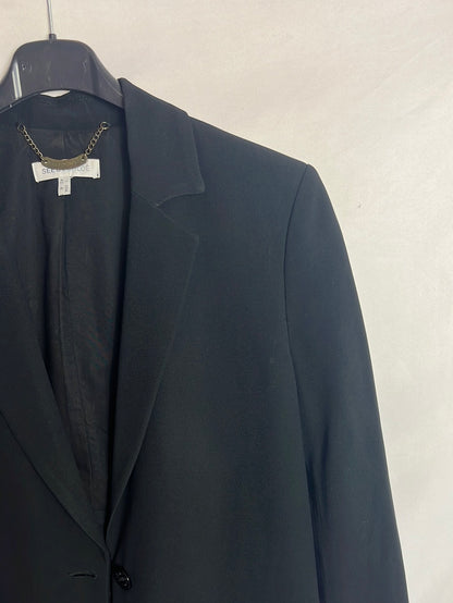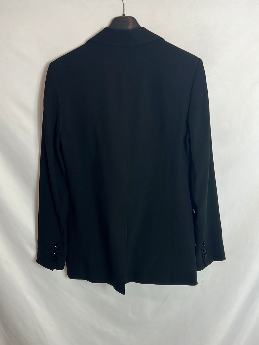 Blazer negra bolsillos. Hombros( hombreras finas) 41 cm, largo 71cm. Tara: mini marca en le cuello no visible