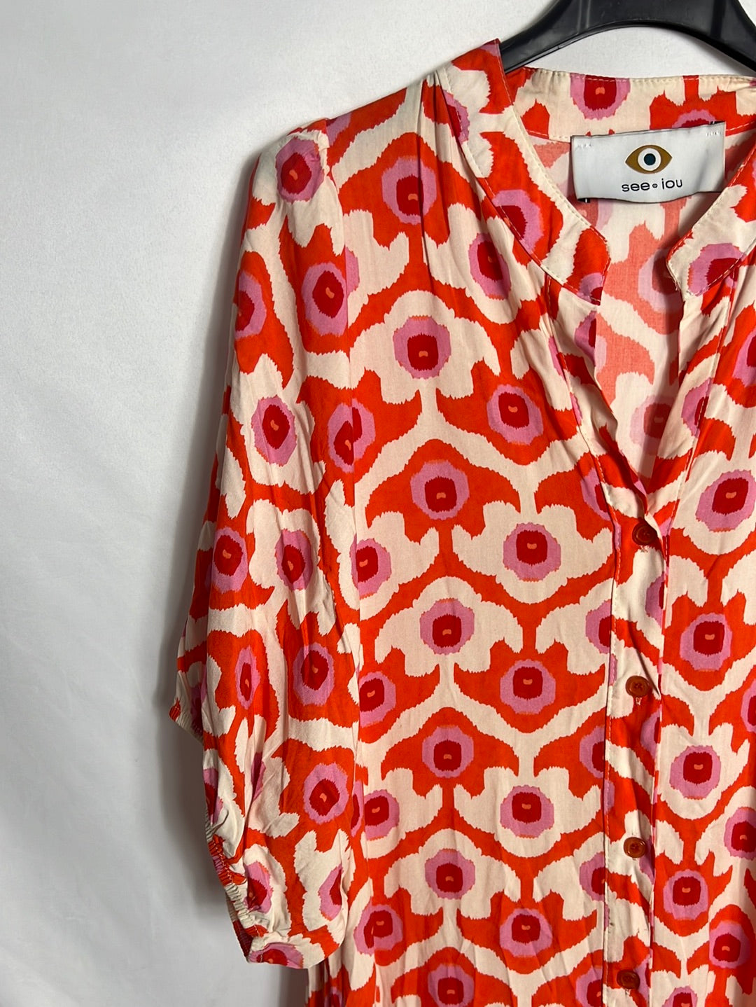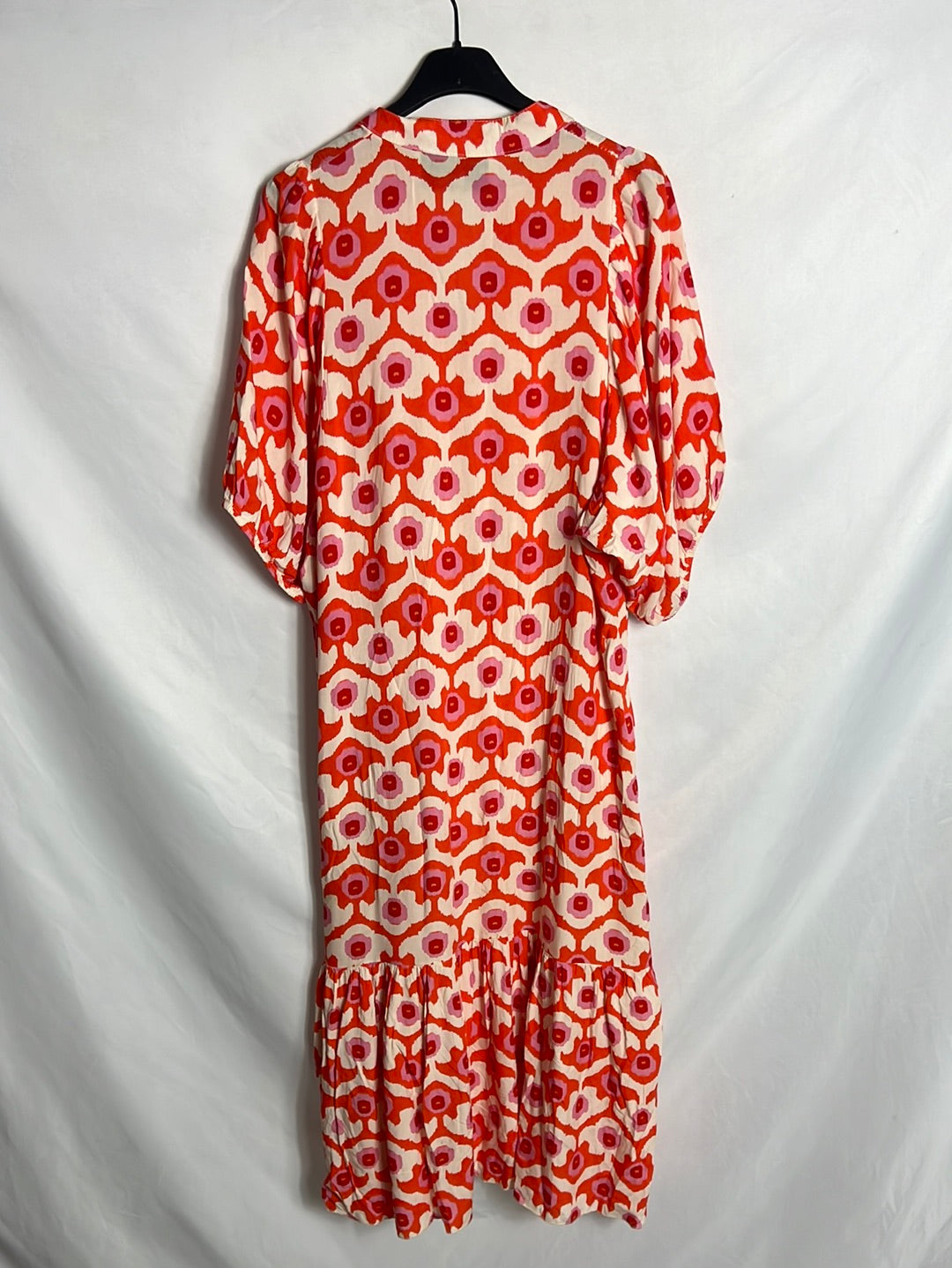 SEE-IOU. Vestido midi naranja estampado. T U(s/m) (Tara)
