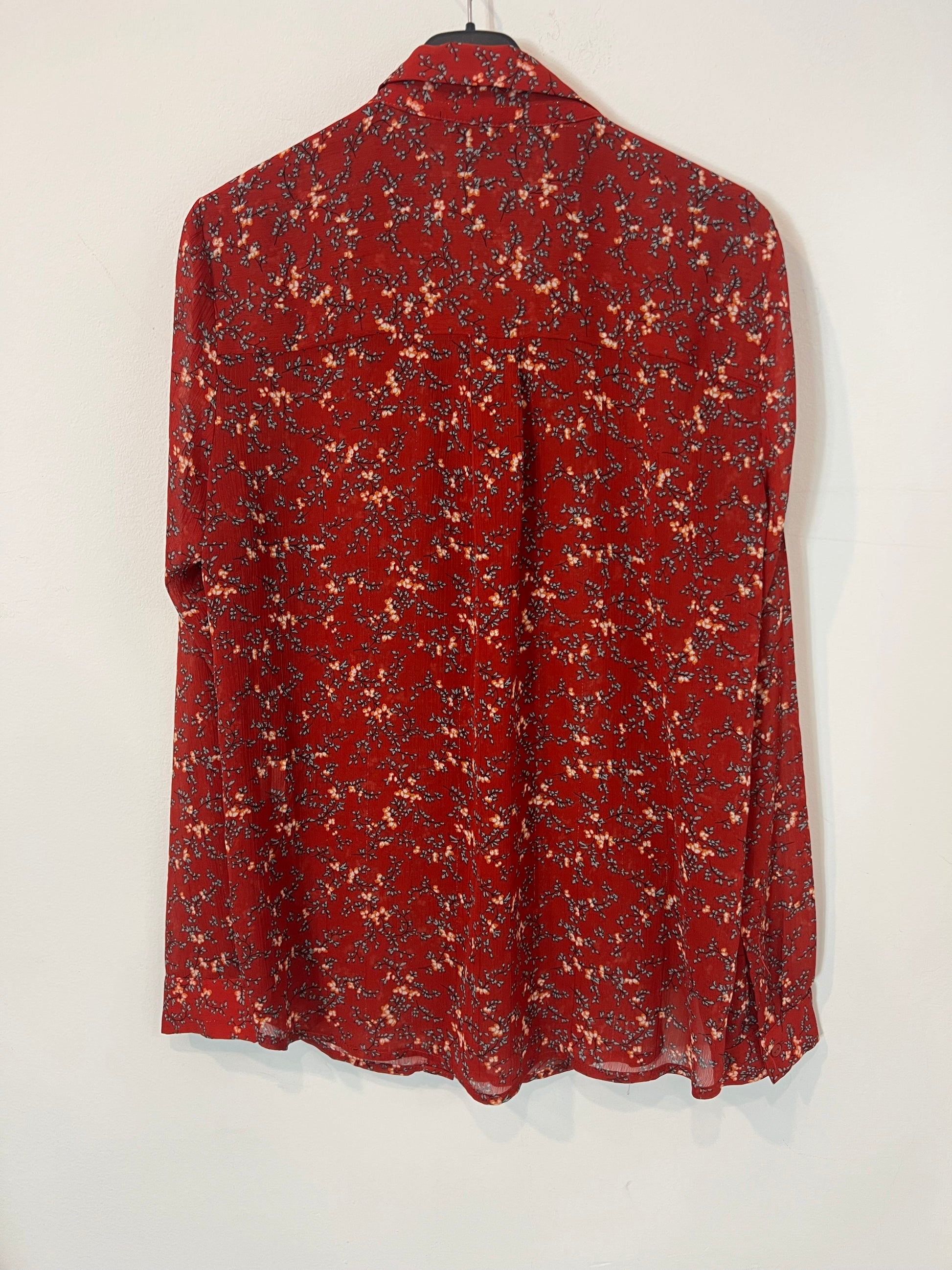 Blusa fluida flores rojiza semi transparente hilos brillo. De sisa a sisa 52cm, largo 69cm